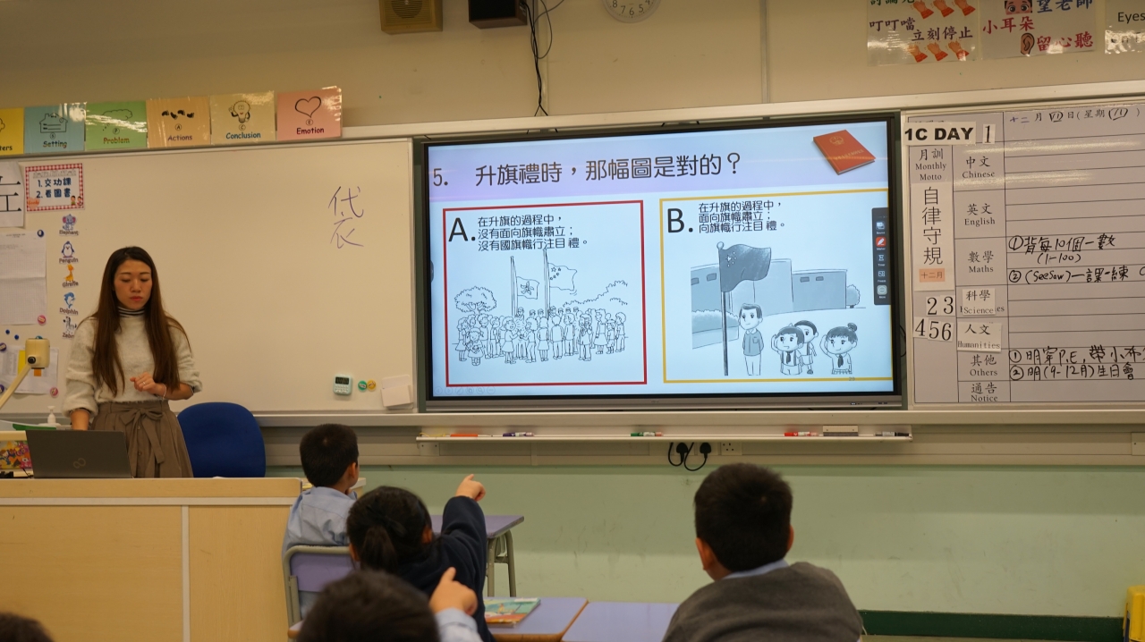 12月4日是「國家憲法日」。為了增進學生對《憲法》、《基本法》和國家安全的知識,本校於當天安排了「國家憲法日」校本課堂學習及延伸活動。本年學生亦參與由教育局特別舉辦的「國家安全短講比賽」,並同時於「國家憲法日」當天向全體學生進行短講分享,從時事、日常生活作例子,以及個人理解及體會等方面切入,思考及連結國家安全與自身的關係,表達對「總體國家安全觀」的理解,以培養國學生的國民身份認同、尊重法治、守法及共同維護國家安全的意識。