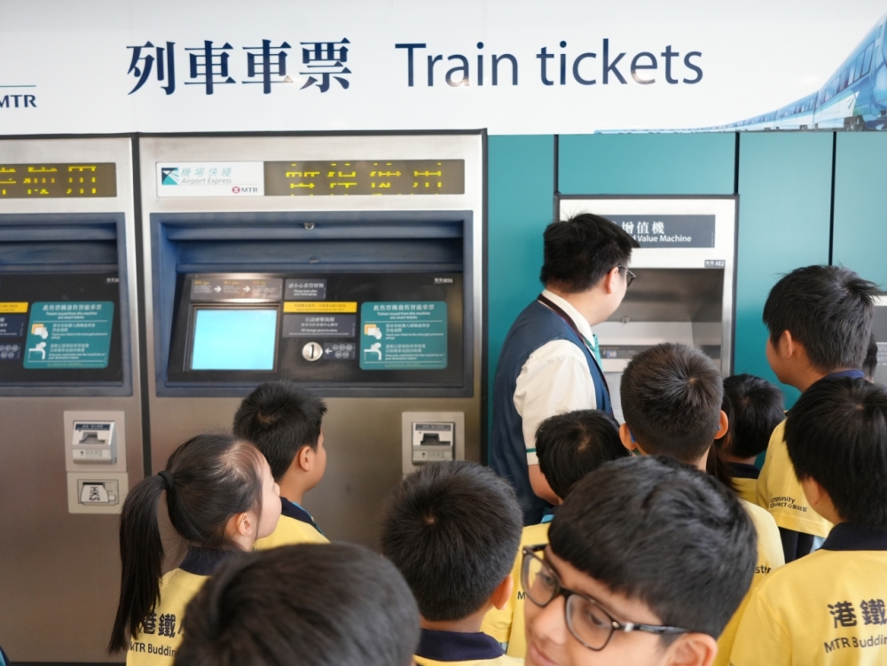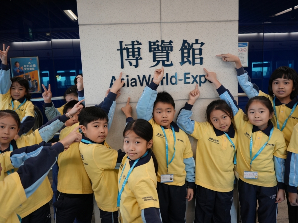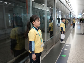 為配合常識科課題「交通真方便」,三年級學生參加由港鐵公司舉辦的「港鐵小站長」計劃。