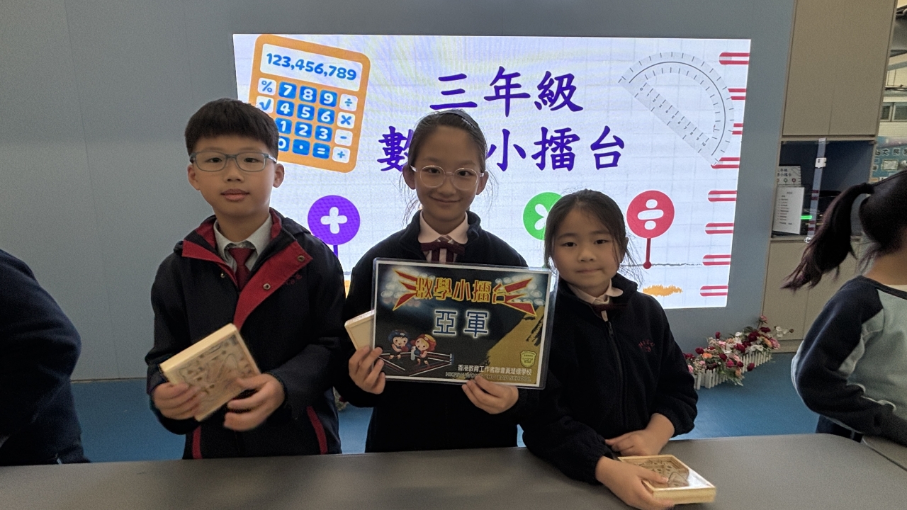 是次數學小擂台的主題為「乘法」,在小擂台精彩照片展示了同學們的數學才能。除了代表各班參賽的同學挑戰不同難度的乘法問題,而台下觀眾則挑戰背背乘數表。