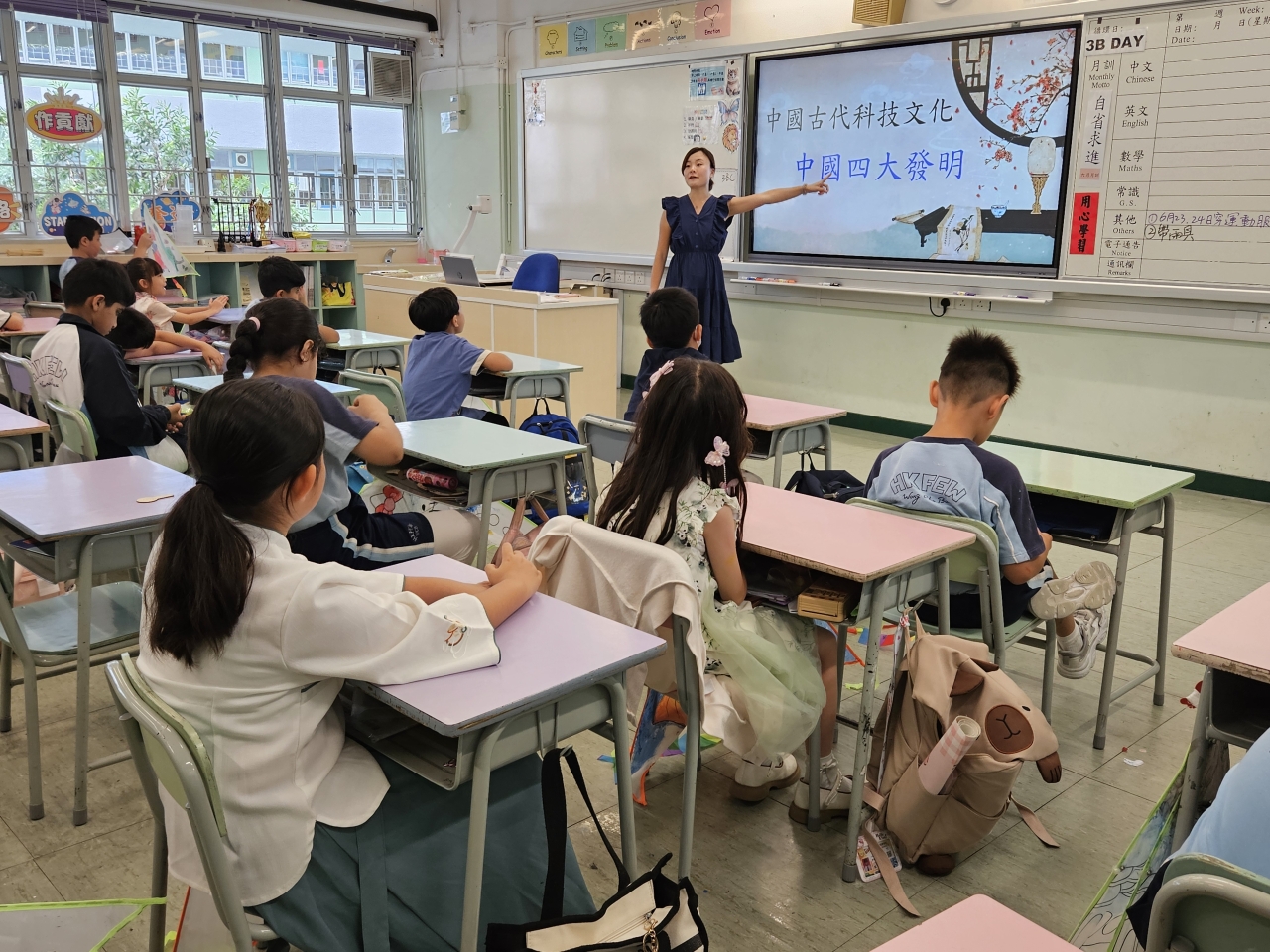 為提升學生的國民身分認同,培養學生具國家觀念及愛國的情操,本校於6月20日舉行「中華文化日」,是次學習主題為「中國古代的科技文化」。當天,學生在課堂學習中國四大發明的知識,然後藉着歷史文化互動劇場深入了解蔡倫造紙的過程,學習其鍥而不捨的精神,並透過參與古科技市集攤位,體驗造紙術、印刷術、投石器、日晷儀、自製弓箭及有趣的科學實驗。此外,學生更認識到風箏在古代科技的重要角色以及進行風箏DIY和空中放風箏體驗。