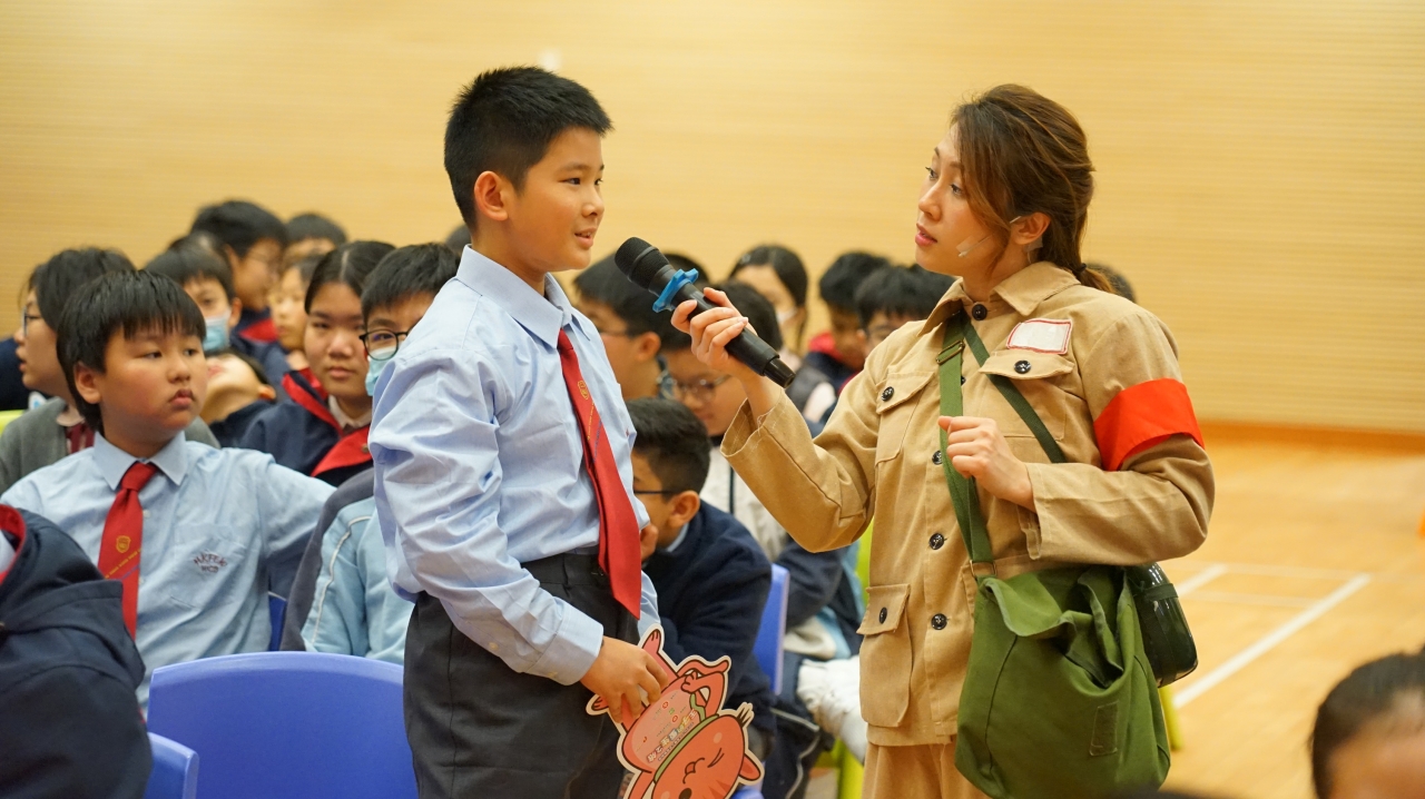 為加強四年級至六年級學生的公民意識和愛國情懷,本校於2月成功申請民政及青年事務局聯同公民教育委員會委聘「香港戲劇教育工作室」舉辦《公民互動劇場——「做個愛國小公民」》,是次劇目為《王子的重生之旅》,以寓教於樂和沉浸式的學習體驗,向學生推廣公民及國民教育。同學們欣賞話劇後,都能認真完成反思工作紙,並明白到要為家庭、社會和國家盡責和作貢獻。
