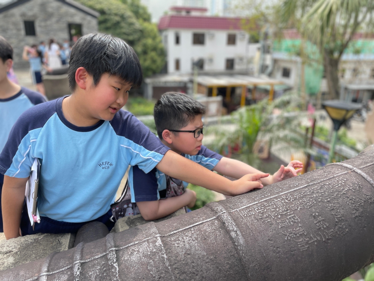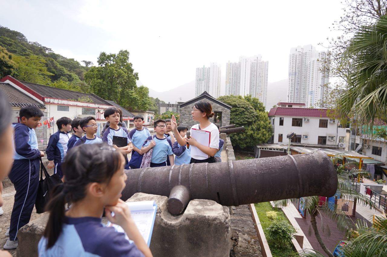 為配合四年級常識科的學習內容《古時的香港》,學生親身到東涌炮台進行實地考察,並將不同學科的知識結合起來,如運用英文學習旅遊景點和指引方向、運用資訊科技規劃路線、以速寫的形式把東涌砲台及附近的環境記錄下來等,進一步認識香港文物古蹟。學生透過跨學科活動能親身參觀和瞭解歷史遺蹟,學習保護歷史遺產,提升學生的國家觀念和國民身份認同。