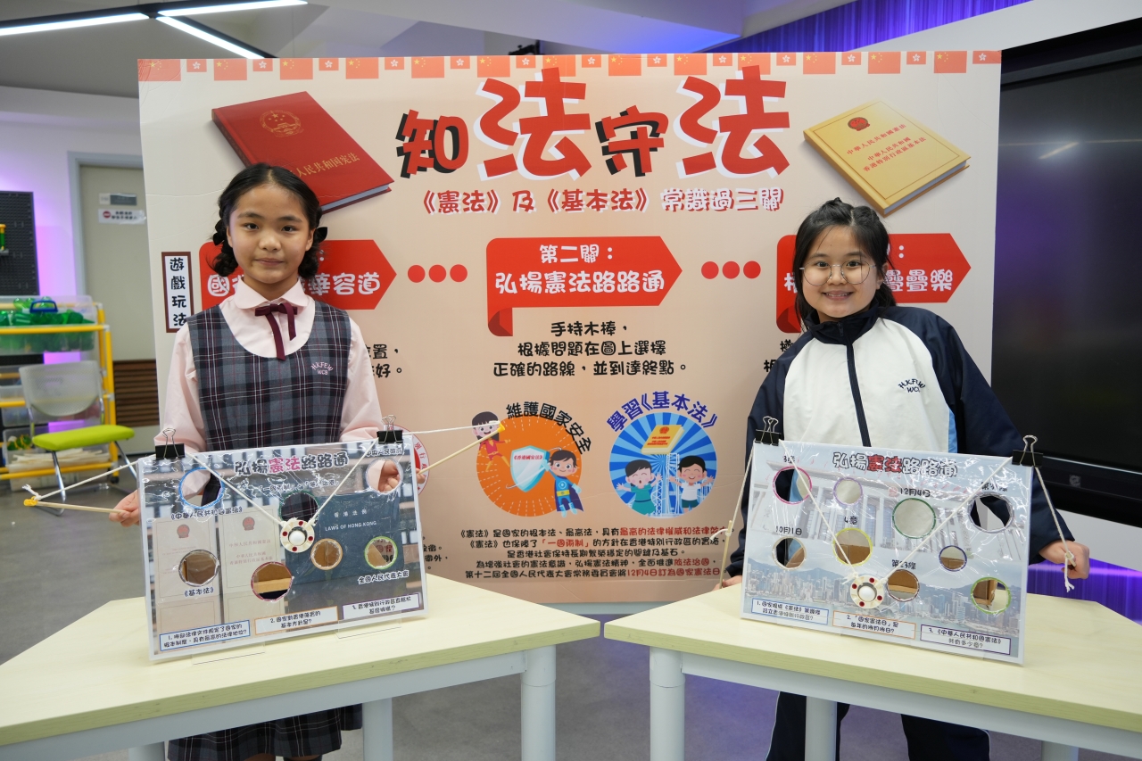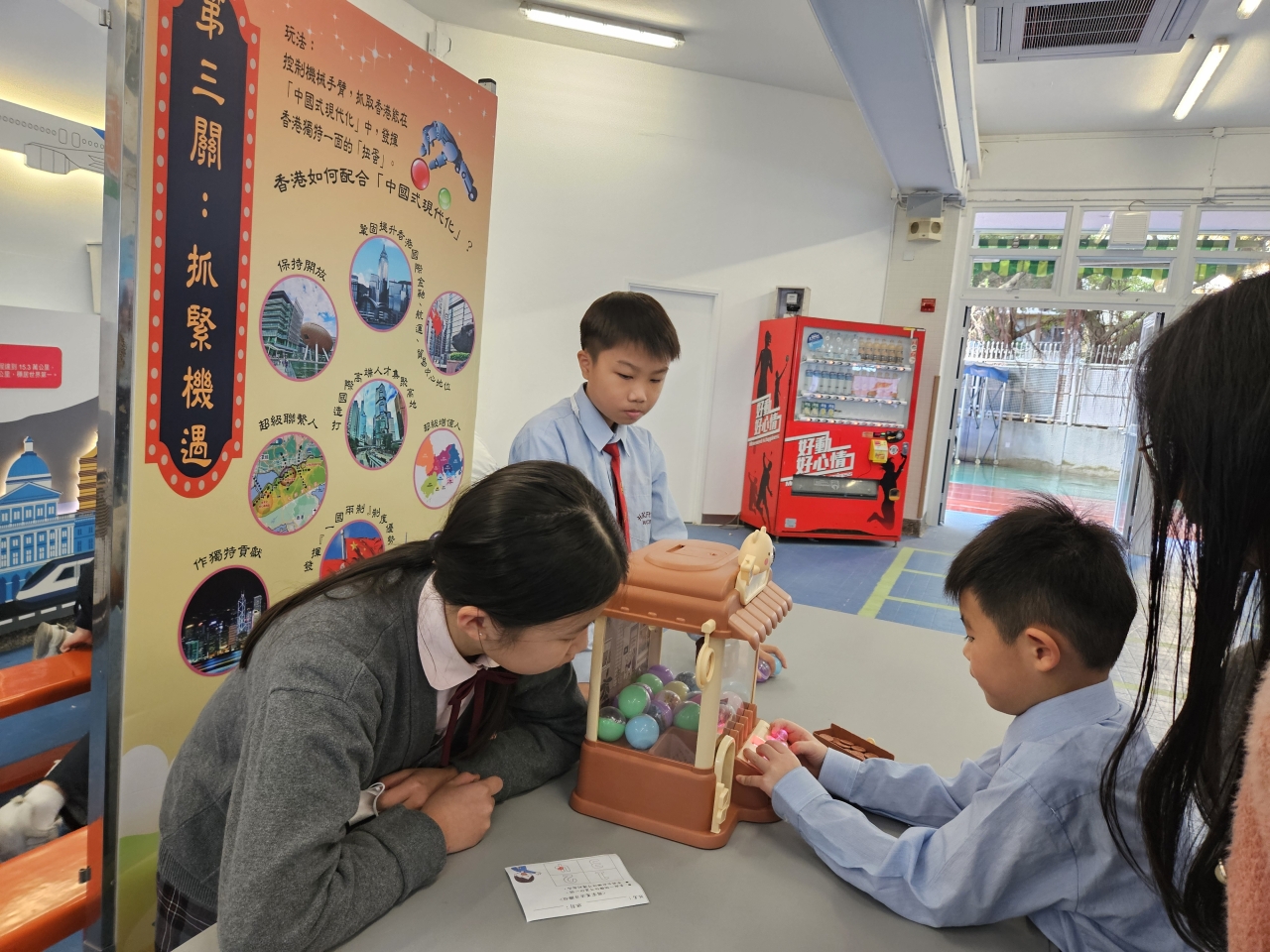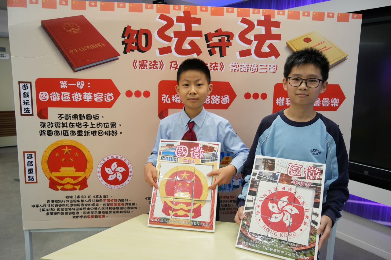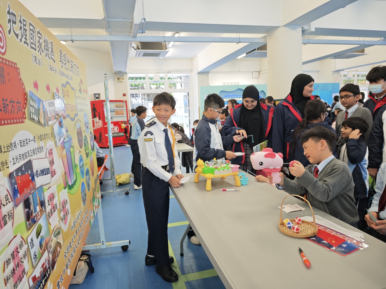 為迎接本年第十一個「國家憲法日」,本校安排《憲法》及《基本法》學生校園大使參加由教育局舉辦之2024「國家憲法日」攤位遊戲設計比賽,並帶領全校學生一同參與攤位遊戲,從遊戲中學習,以推動學生維護憲法權威的觀念,培養學生的國民身份認同。