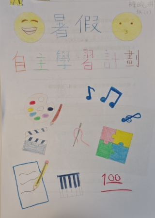 暑假期間,本校學生善用課餘時間,進行了「暑期自主學習計劃」,按個人的性格、需要及興趣,自訂假期的學習目標,可以是關於學術的提升、技能的訓練、態度的培養或其他,並於假期內持之以恆,記錄學習過程,完成學習目標,以提升自我管理及自主學習的能力。