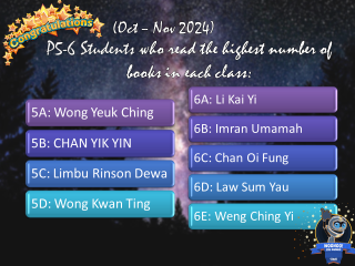 The Champions of Raz-Kids Online Reading Programme (Oct-Nov 2024)