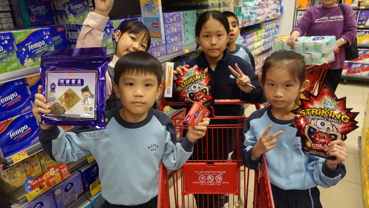 Students bought presents for the lucky draw in the coming Christmas party. They needed to plan what they wanted to buy before. On the shopping day, students walked around Yat Tung Shopping Centre and went to Wellcome Supermarket to buy presents. Students were excited to choose goods and calculate the total cost of the goods in the supermarket. Everyone had a great shopping and learning experience in this activity.