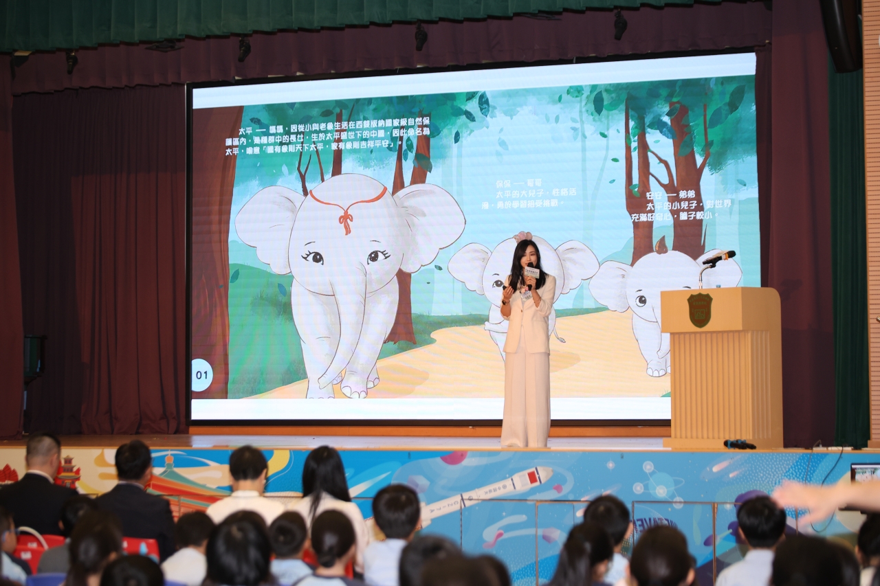 活動中,葉女士以生動親切的語言,帶領同學走進中國雲南西雙版納的雨林世界,跟隨象群「太平」一家踏上北遷的真實旅程。同學們不僅認識到大象的習性、鼻子的神奇功能,更了解到氣候變化如何影響動物的生存環境。