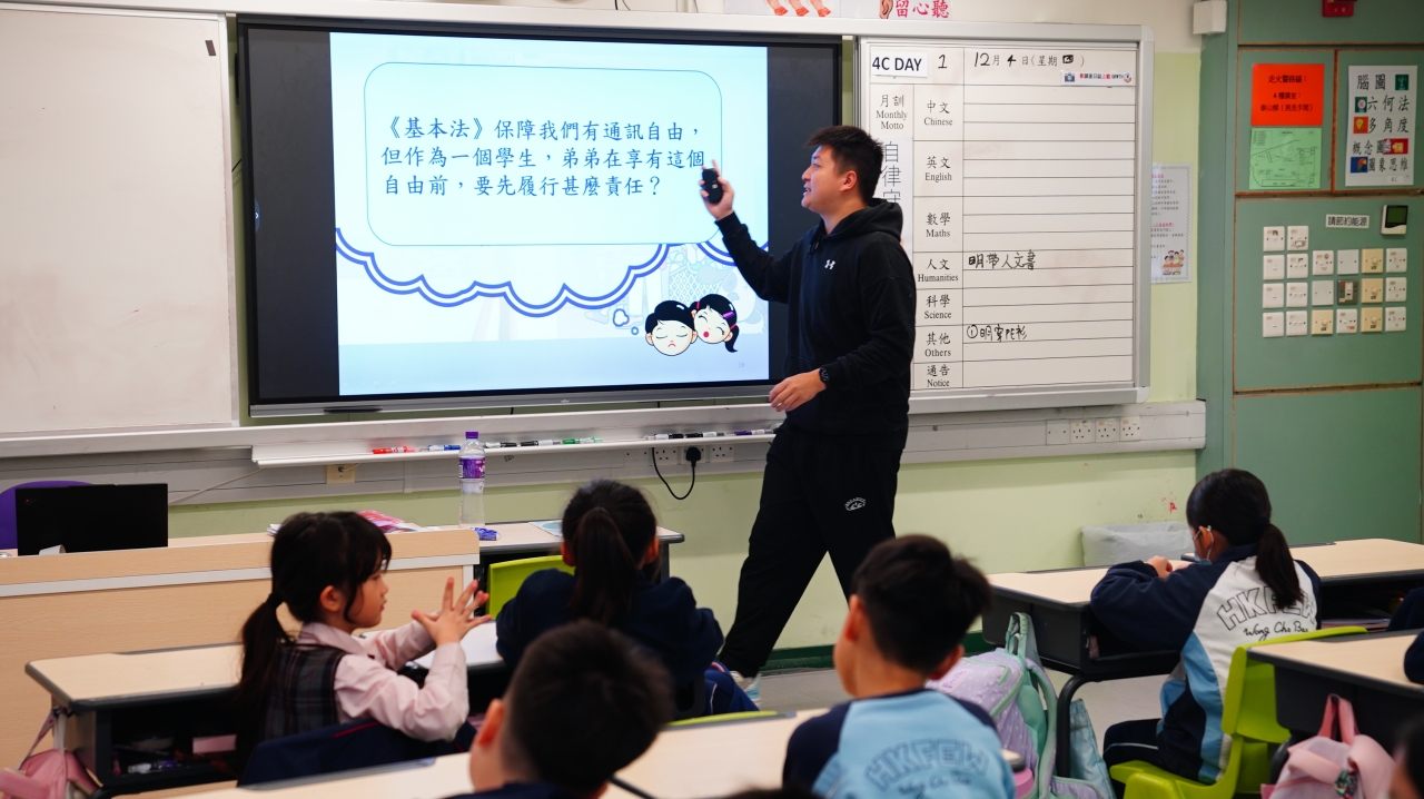 12月4日是「國家憲法日」。為了增進學生對《憲法》、《基本法》和國家安全的知識,本校於當天安排了「國家憲法日」校本課堂學習及延伸活動。本年學生亦參與由教育局特別舉辦的「國家安全短講比賽」,並同時於「國家憲法日」當天向全體學生進行短講分享,從時事、日常生活作例子,以及個人理解及體會等方面切入,思考及連結國家安全與自身的關係,表達對「總體國家安全觀」的理解,以培養國學生的國民身份認同、尊重法治、守法及共同維護國家安全的意識。