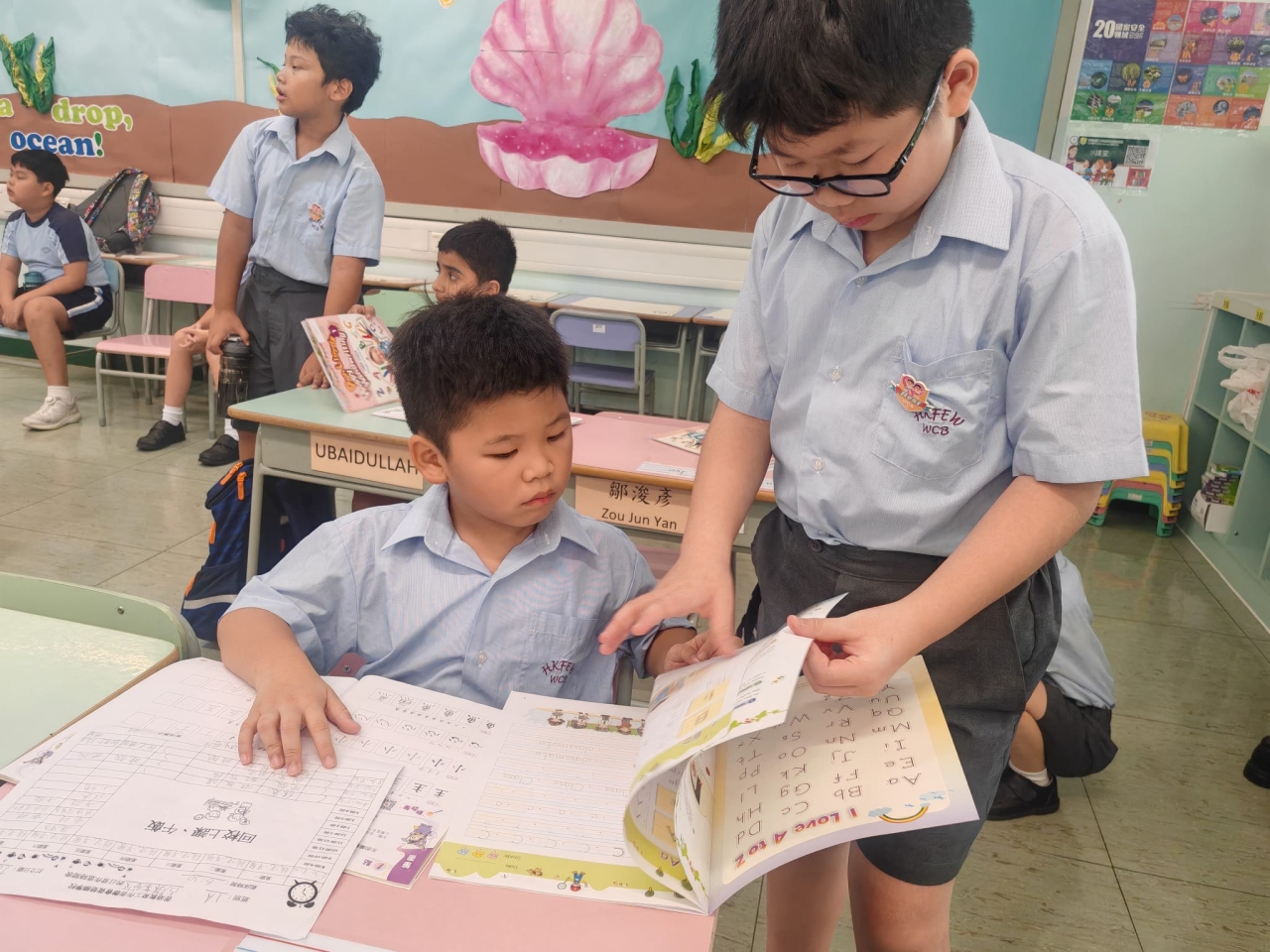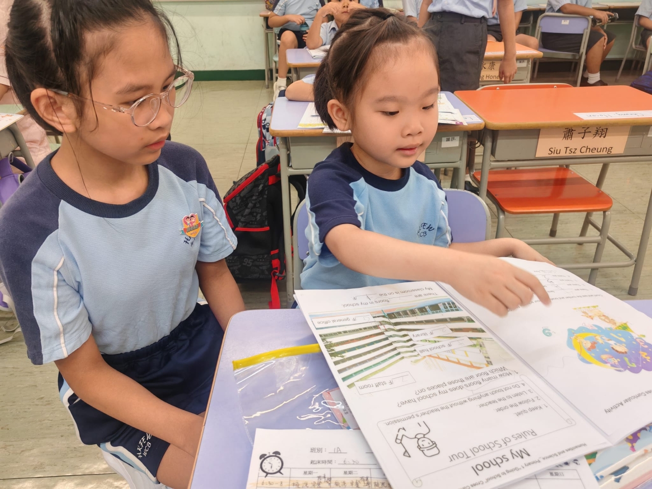 本年度學校推行「我是你的BEST」計劃,由充滿愛心的高年級大哥哥、大姐姐照顧小一的學弟學妹,協助他們檢查家課冊及適應學校日常生活。本計劃旨在培養學生正確價值觀、推廣朋輩互助精神,建構關愛文化。大哥哥、大姐姐在小息期間細心照料,盡顯愛護之心,深受學弟學妹歡迎。