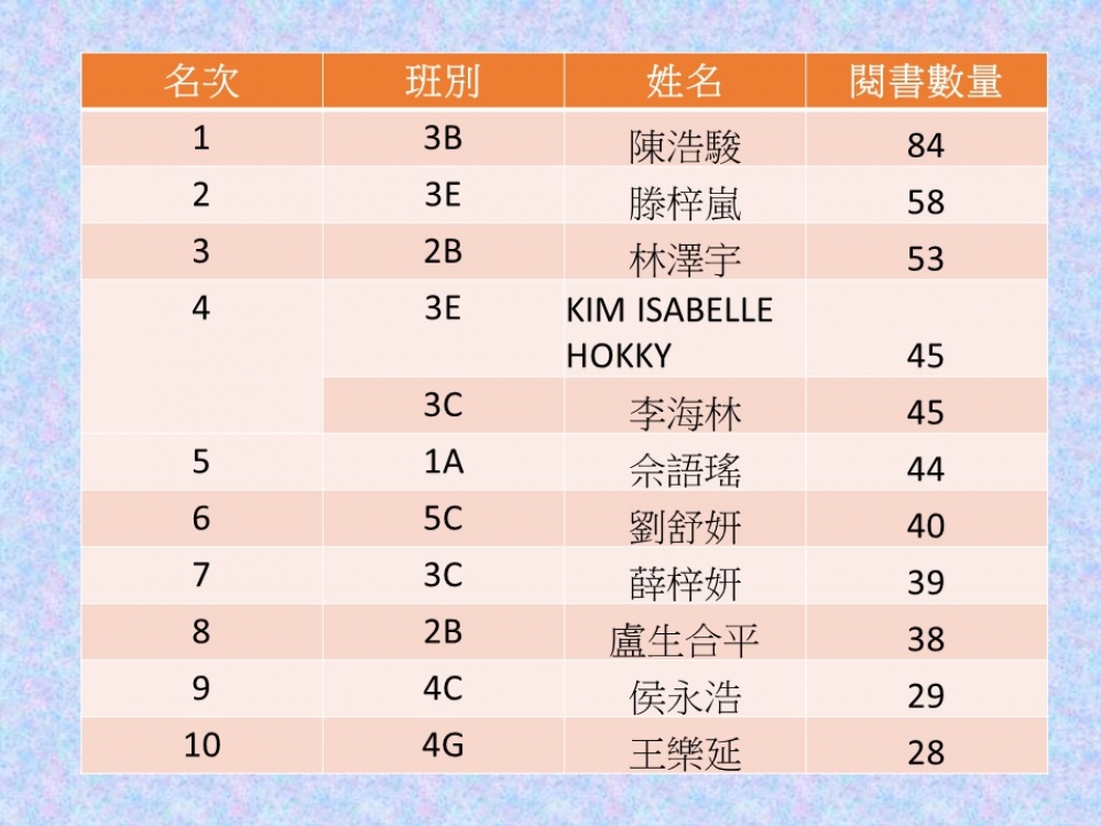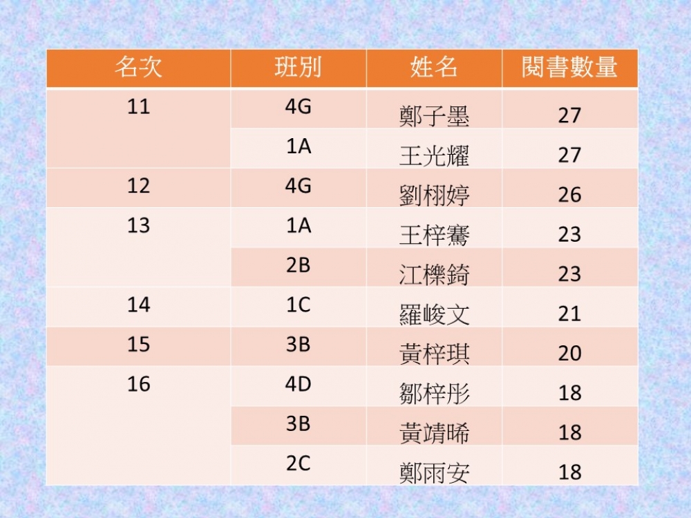 「e悅讀學校計劃」閱讀龍虎榜成績(10月)