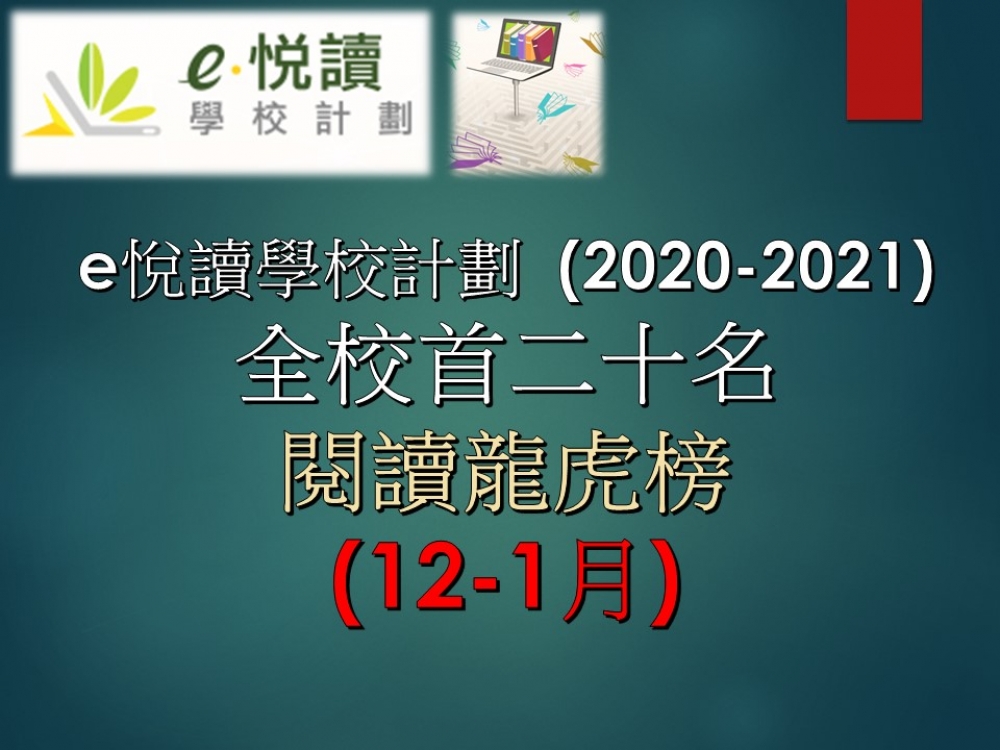「e悅讀學校計劃」閱讀龍虎榜成績(12-1月)