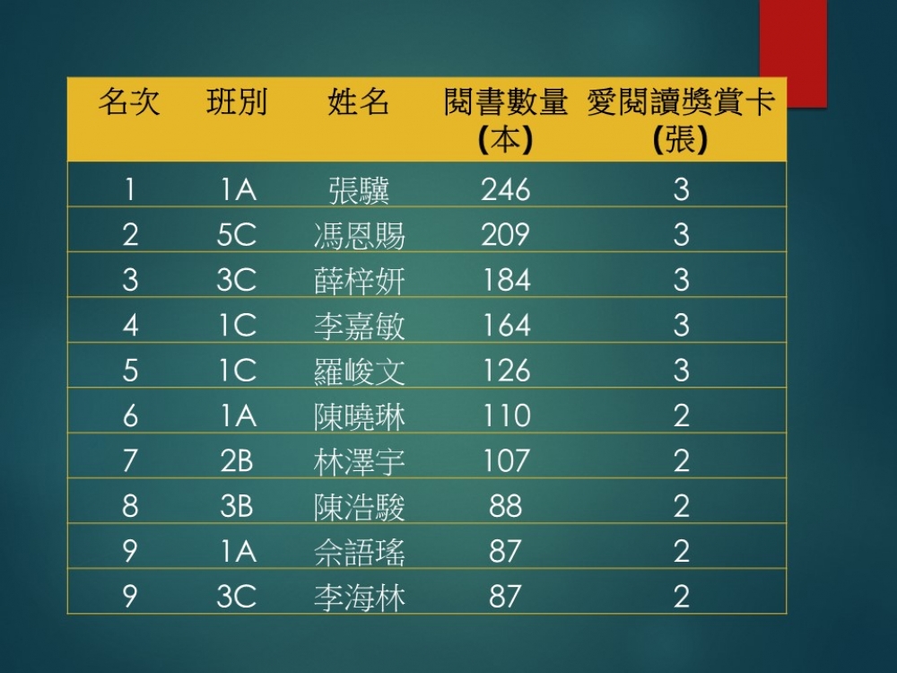 「e悅讀學校計劃」閱讀龍虎榜成績(...