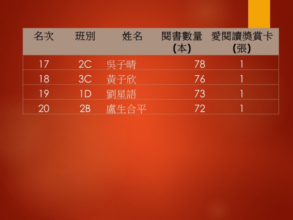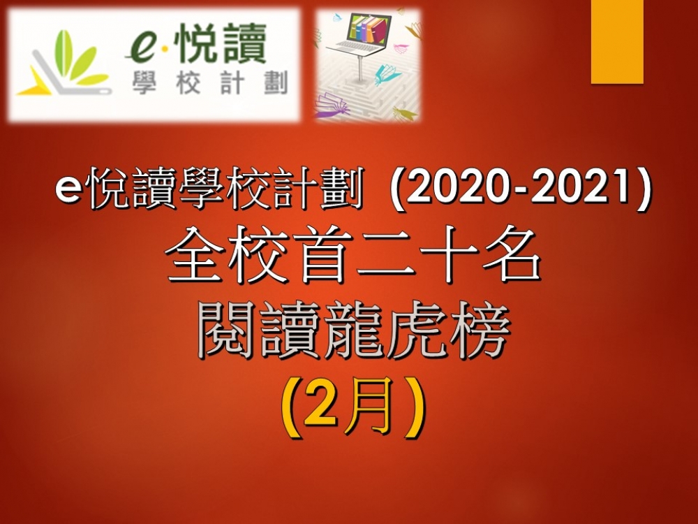 「e悅讀學校計劃」閱讀龍虎榜成績(2月)