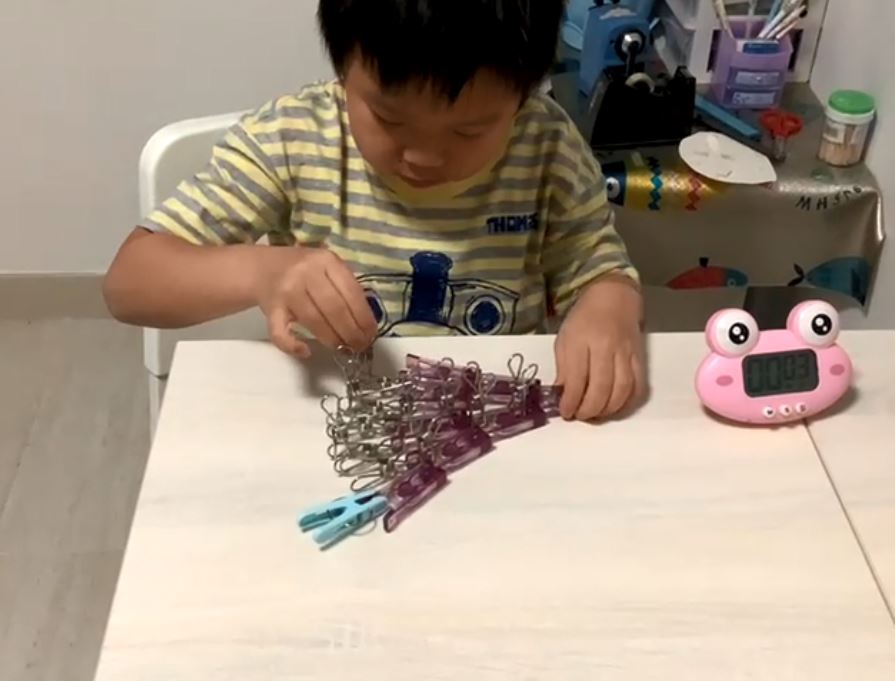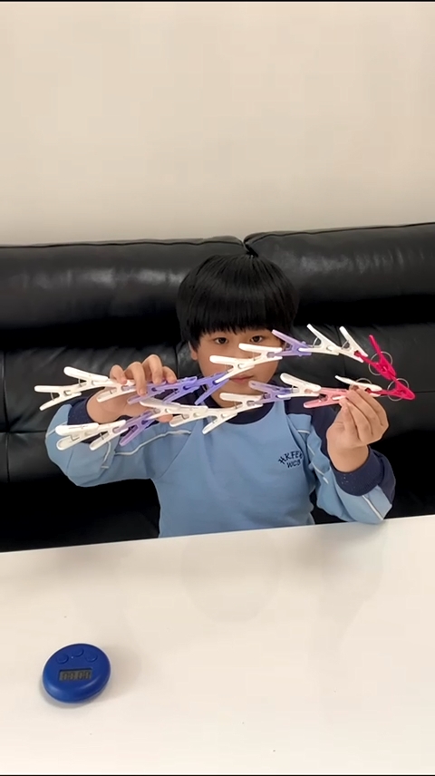 訓輔及學生支援組「一分鐘小挑戰(2月)」已於上星期圓滿結束。本次挑戰,低年級(1-3)學生需要在限時一分鐘內夾好20個衣夾,而高年級(4-6)學生需夾好25個衣夾。不少學生在視頻中總結經驗,互相分享成功的小技巧。是次活動目的是希望學生通過挑戰,培養自信心。在反覆嘗試的過程中,更能學會堅持不懈,明白有志者事竟成的道理。
