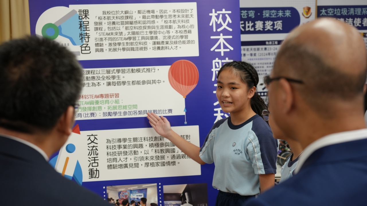 我校師生獲中國科學技術協會邀請出席「全國科普月—香港站」活動。活動通過全面展示國家航天科技所取得的突破和成就,學習航天員的勇毅精神,培養青年人的愛國情懷。當中,我校學生向中科協領導們進行科技創新成果展示,與專家進行深入的研討,也與五所香港共建全國航天特色學校進行互動交流 ,大力弘揚科學精神與科學家精神,助力科技強國建設的成果。
