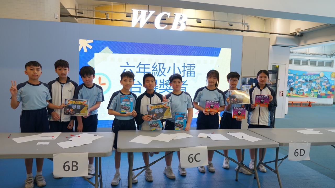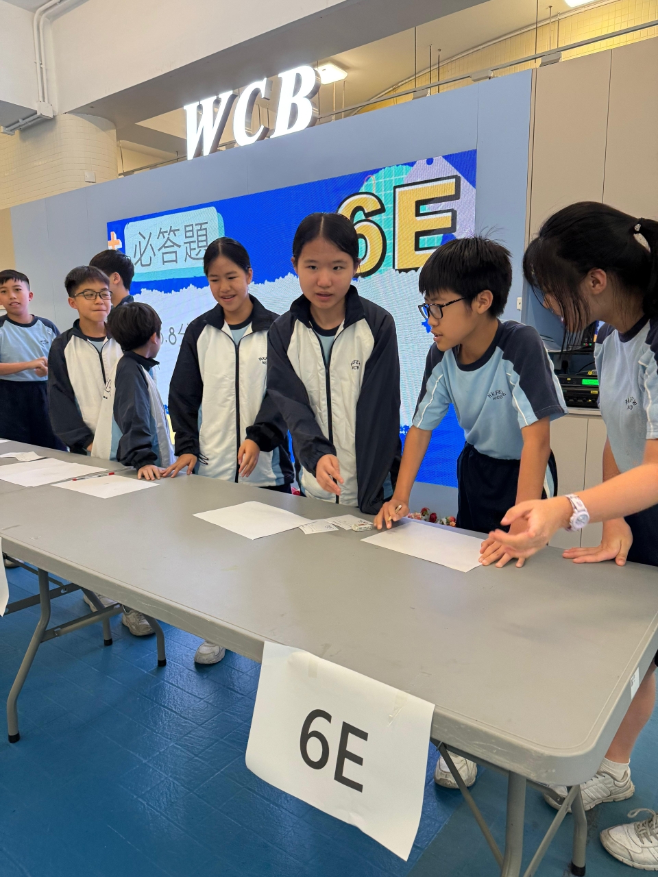 六年級比賽主題為「百份數化聚」,在比賽過程中,競爭非常激烈,各班派出的學生代表表現認真和投入,在限時內鬥快完成題目,考驗學生對數學概念的理解以及運算的速度。台下觀眾亦極力為他們打氣、鼓舞及參與搶答題,最後以各班的總成績分出勝負。