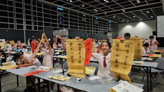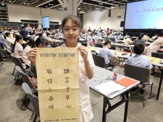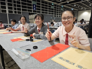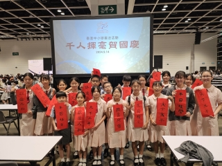 為鼓勵學生多練習書法,培養對中華文化、藝術的興趣,學生於2024年9月14日(星期六)參加了由教育局為慶祝中華人民共和國成立75周年主辦的「千人揮毫賀國慶」活動。同學有機會與來自不同中、小學的同學一起即席揮毫,書寫賀頌語及詩句,場面非常壯觀。同學們表現非常投入,不但專注於一筆一劃,也藉此活動互相交流、觀摩,感受書法之美。