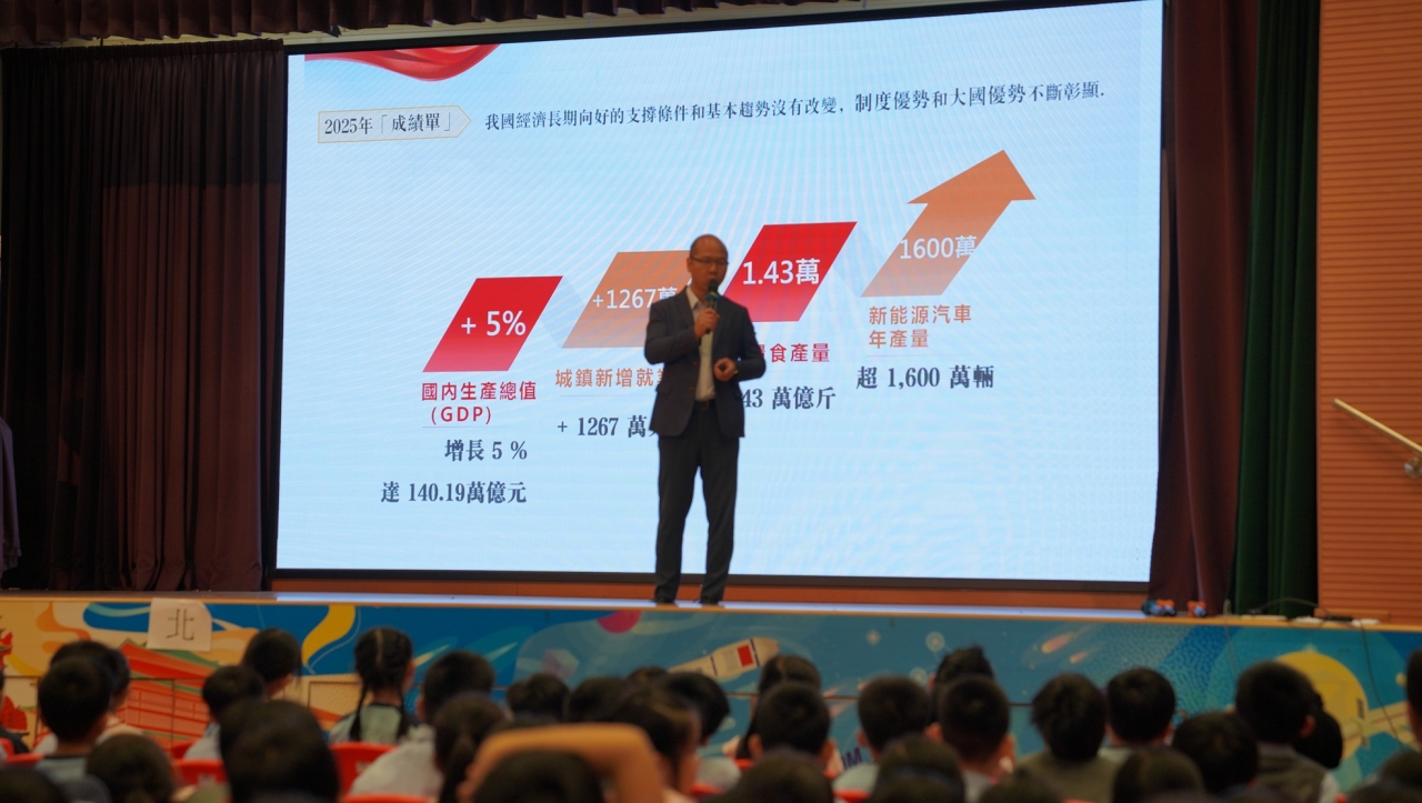 本校於3月31日舉行了四月份升旗禮,當天早上,校長在國旗下發表講話,主題為「全國兩會精神分享」。校長向同學們介紹了全國兩會的基本意義與主要工作內容,並簡介「十五五」規劃中的國家發展方向。最後,校長勉勵同學們要「讀好書、強身體、樹品格、作貢獻」,為未來投身社會、服務國家做好準備。