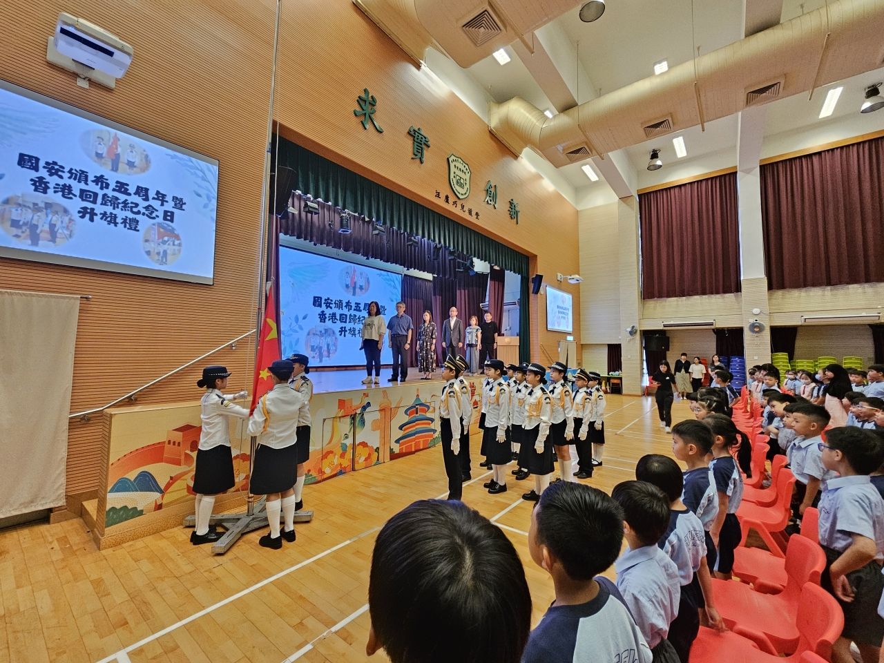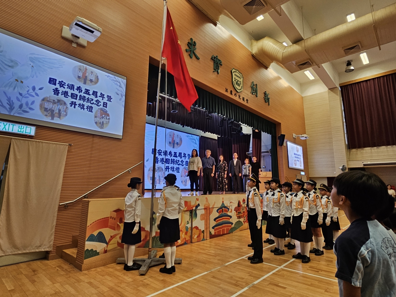 香港回歸祖國是中華民族的重要里程碑;國安法的實施保障了香港繁榮穩定。6月30日,我校進行了「國安頒布五周年暨香港回歸紀念日升旗禮」以紀念這個雙重的重要時刻。黃校長於國旗下講話中,強調維護國家安全是每位公民的責任。在「一國兩制」下,香港必將與祖國共同發展、共享繁榮,實現國安家安的美好願景。希望同學們勤奮學習,將來為香港、為國家貢獻力量。