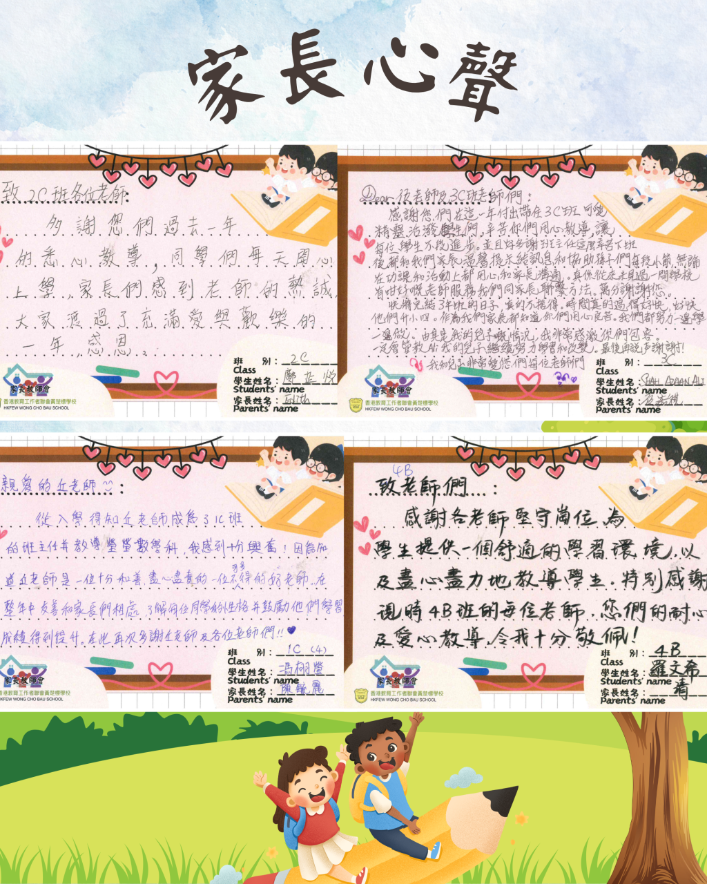 2024-2025年學期結束了,標小家長為表示對標小老師的謝意,寫下了充滿暖意及鼓舞的心意卡。