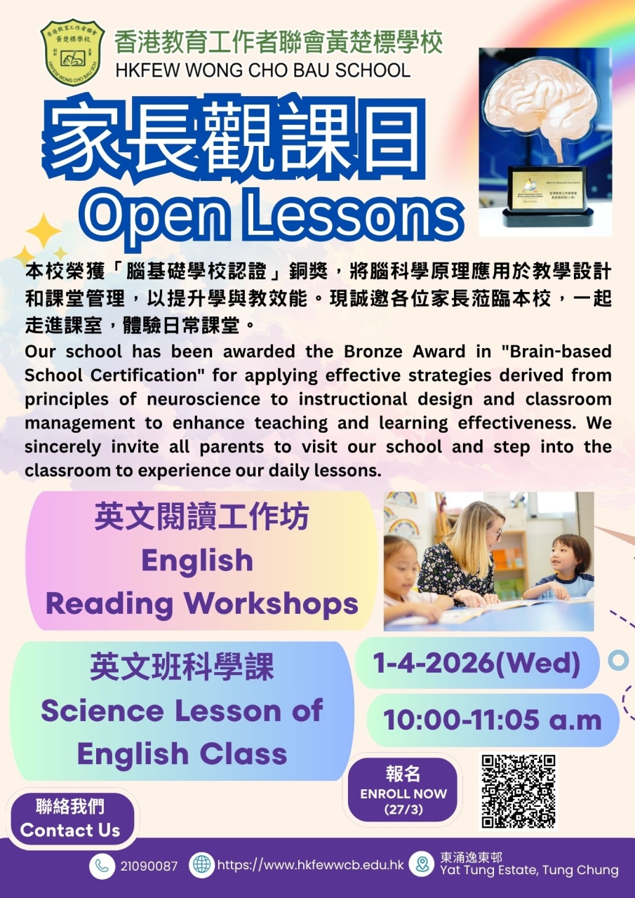誠邀各位家長親臨本校,走進課室,親身體驗我們的日常課堂,見證孩子如何在科學與關懷並重的環境中學習成長!