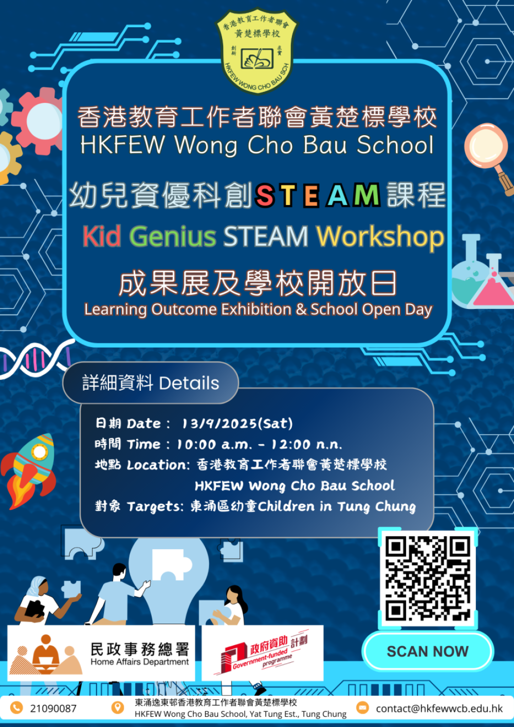 本校將於9月13日(星期六)舉行「幼兒資優科創STEAM課程成果展及學校開放日」!