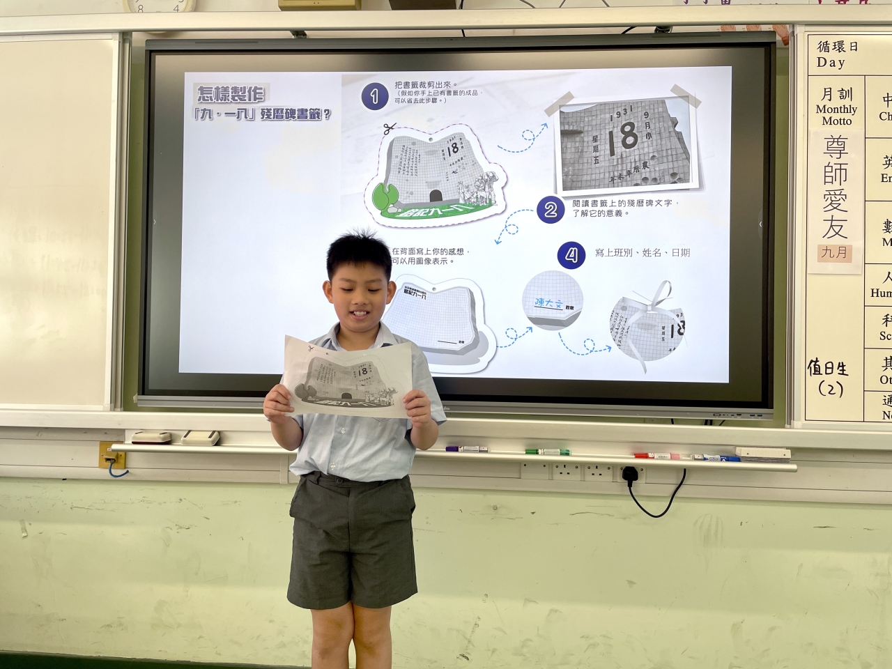 通過親眼見證國家的強大與繁榮,同學們的民族自信心和自豪感油然而生。直播活動後,亦製作了追思心意卡及在九一八殘曆碑書籤上寫上感受。希望同學們牢記這段由先烈們用鮮血鑄就的艱苦而輝煌的歷史,深刻理解今天的和平來之不易,好好珍惜現在,創造未來。