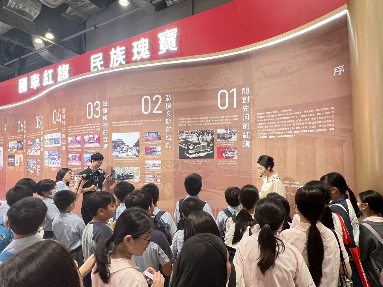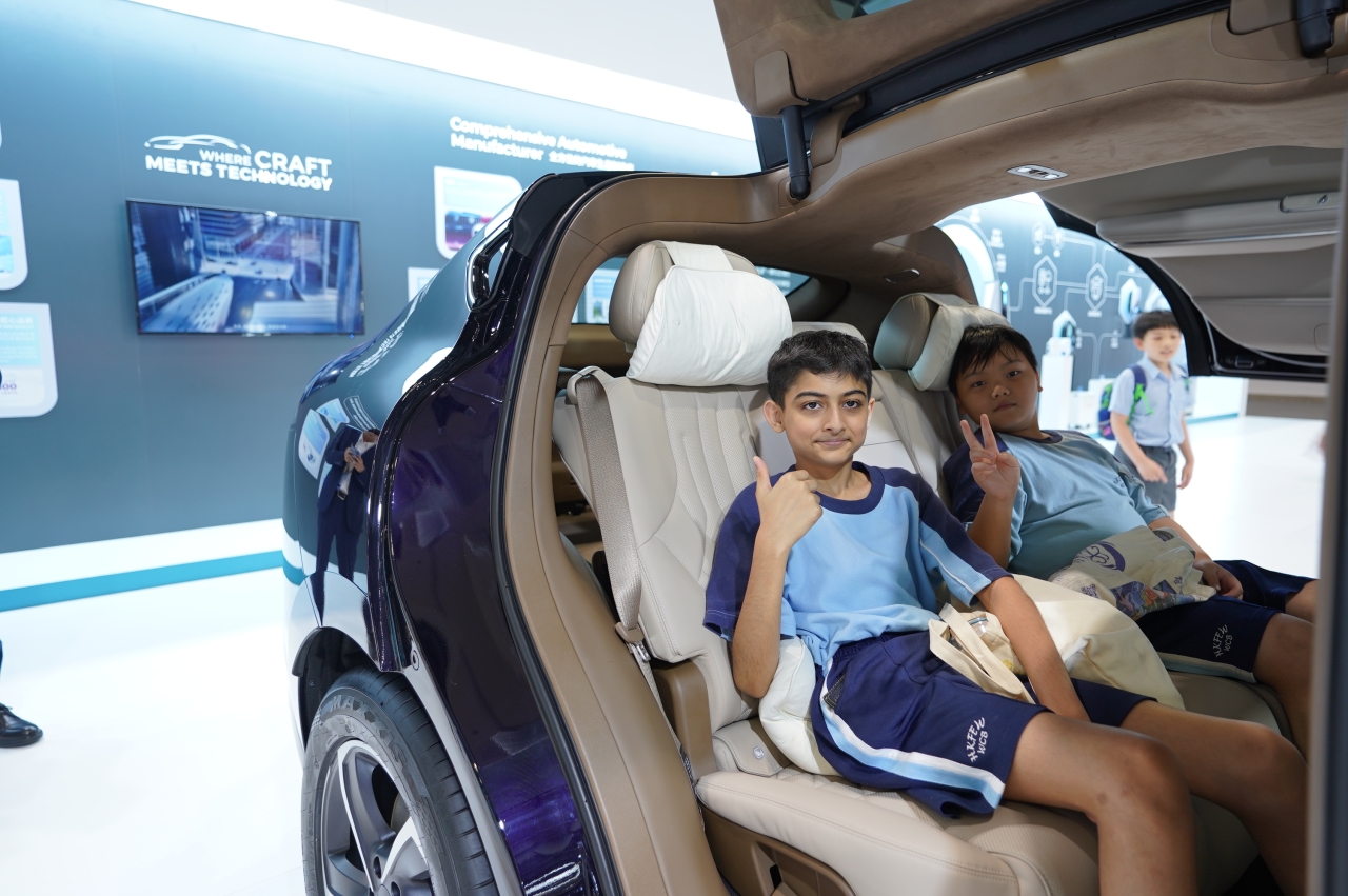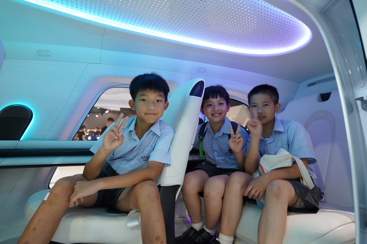 從小鵬飛行汽車到奇瑞機器人,再到紅旗汽車的歷史與新中國的發展故事,同學們沉浸在科技的驚喜中。而在廣汽展區,學生們更親身體驗VR學習、可駕駛虛擬汽車互動系統、全息投影與數字沙盤技術,感受未來汽車科技的無限可能!這場展覽讓同學們見證了中國汽車如何引領創新,聯通世界!