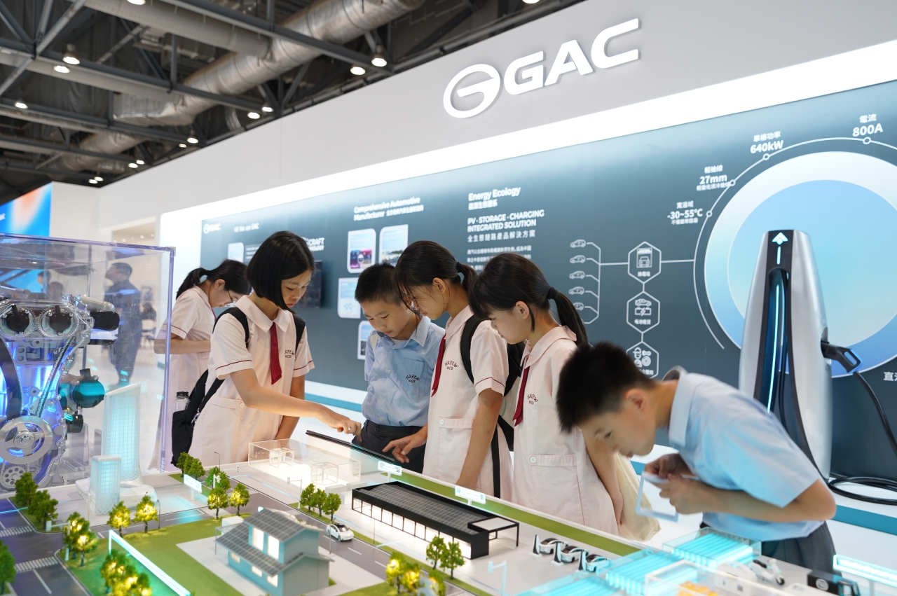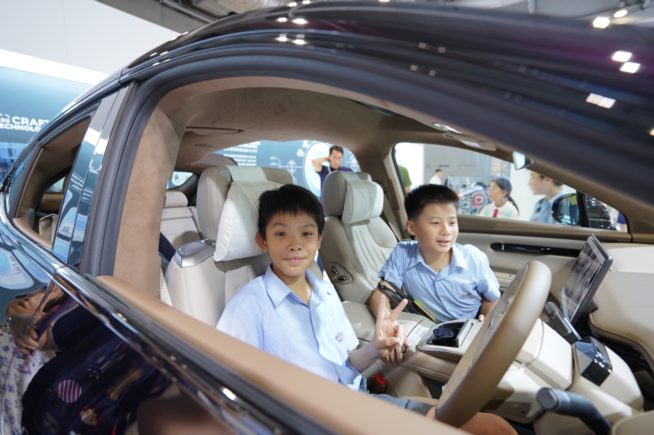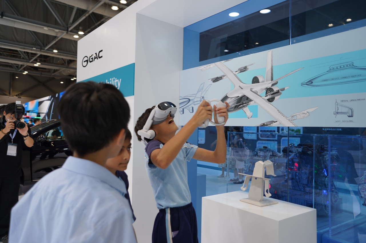 從小鵬飛行汽車到奇瑞機器人,再到紅旗汽車的歷史與新中國的發展故事,同學們沉浸在科技的驚喜中。而在廣汽展區,學生們更親身體驗VR學習、可駕駛虛擬汽車互動系統、全息投影與數字沙盤技術,感受未來汽車科技的無限可能!這場展覽讓同學們見證了中國汽車如何引領創新,聯通世界!