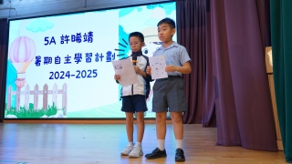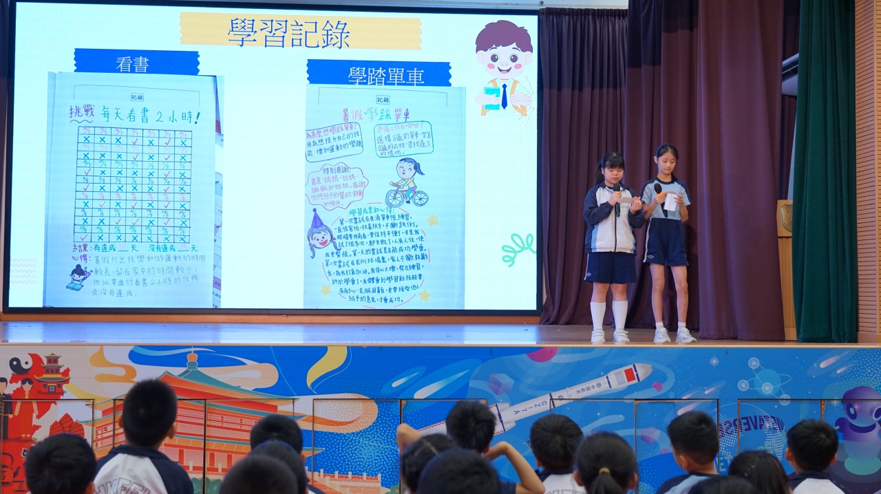 「暑假自主學習計劃」的目標是鼓勵同學善用課餘時間,提升自我管理能力,並培養自主學習的精神。暑假過後,大家帶着自己的學習計劃回到校園,在班內分享訂立目標和記錄過程的經驗。表現特別出色的同學更走上禮堂舞台,向全校師生展示成果。透過這些分享,大家能互相觀摩、交流心得,從彼此的做法中得到啟發,學到更多不同的學習策略。