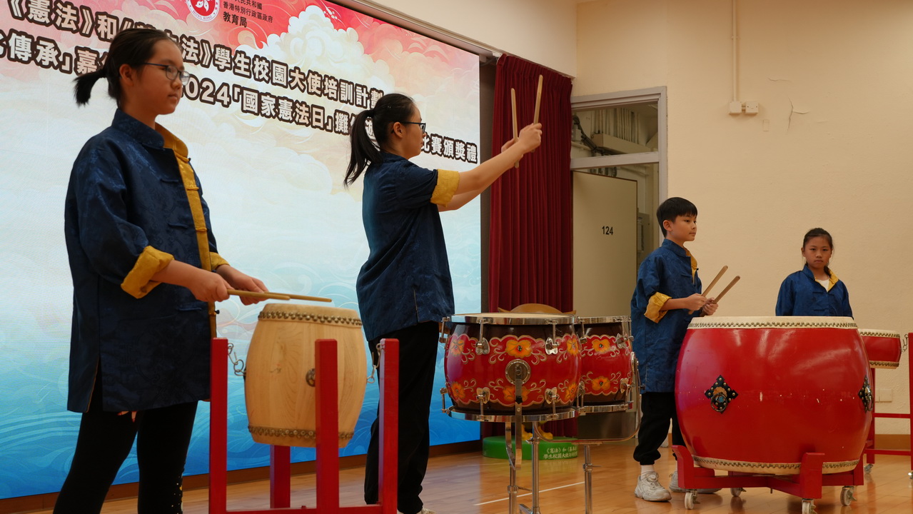 本校十分榮幸參與由教育局主辦的2024「國家憲法日」攤位遊戲設計比賽,並在比賽中榮獲季軍及最具創意獎雙項殊榮。頒獎典禮已於7月4日圓滿舉行,教育局更特別邀請本校鼓樂隊在典禮上進行精彩表演,為活動增添光彩。