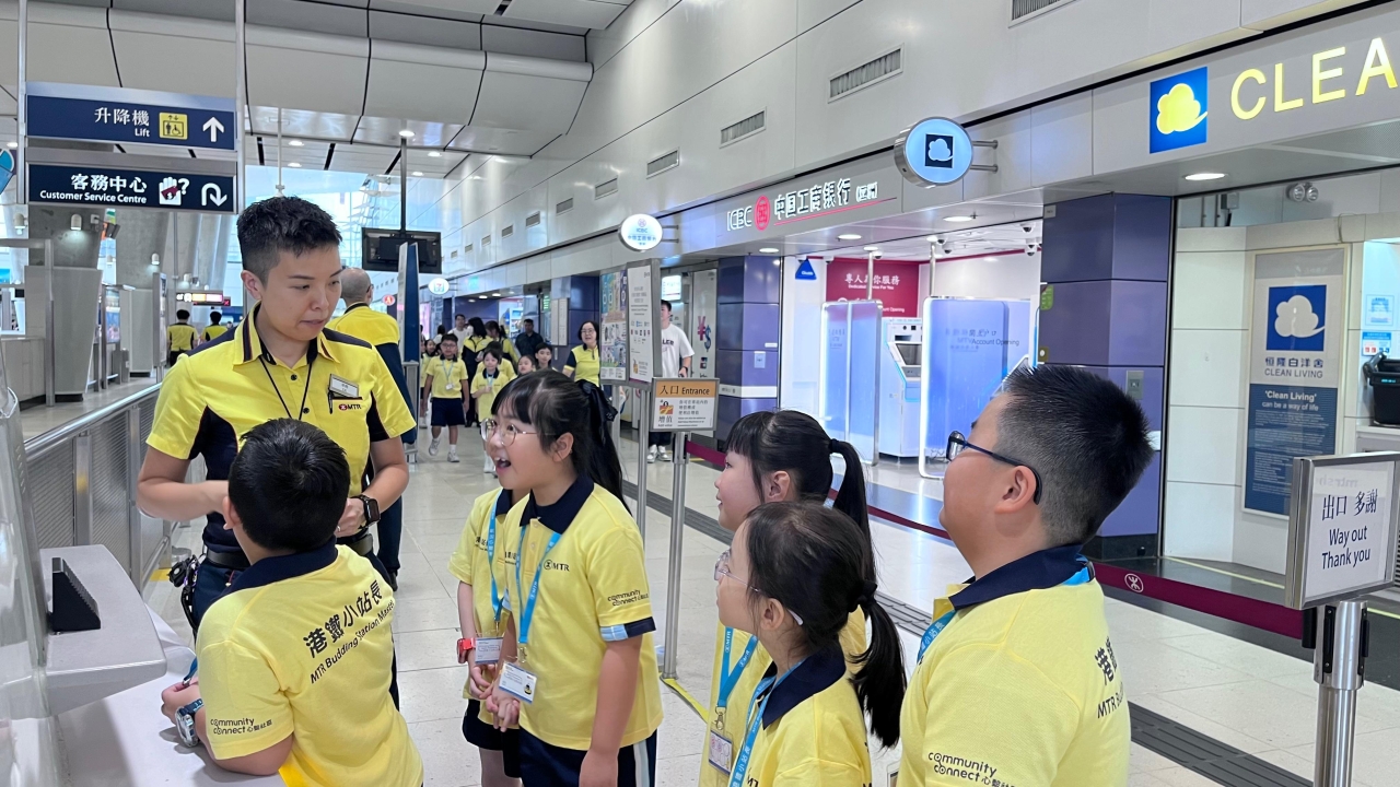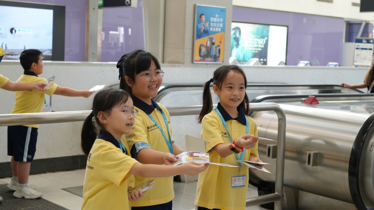 為配合人文科課題「交通真方便」,20位三年級學生參加由港鐵公司舉辦的「港鐵小站長」計劃。同學們穿上制服,肩負使命,在東涌站向乘客宣傳鐵路安全信息。同學們除了學習鐵路安全及有禮行為外,還模擬車站職員的日常工作。透過這次寶貴的學習經驗,不僅提高了同學們的觀察力和應變能力,還提升了他們的自信心和溝通技巧。