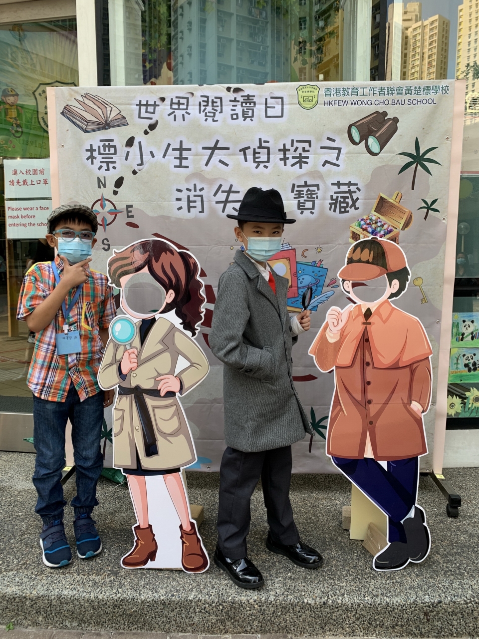 本年度校本閱讀月「世界閱讀日」的主題為「標小生大偵探之消失的寶藏」,目的是鼓勵學生在閱讀月期間閱讀有關偵探及推理的實體或電子圖書。期間,學生化身成小偵探,參加各項富趣味性的閱讀任務,包括「封面偵探王」、「捐書小探員」及「變身小偵探」,同學從中取得提示卡,以猜出寶藏所在位置。每級參與率最高的班別都能獲邀出席4月23日舉行的「世界閱讀日偵探大會」。在偵探大會裏,除了簡介世界閱讀日的歷史及各國文化,還有外籍老師講故事和各項頒獎儀式,包括「變身小偵探」角色優秀造型表演暨頒獎禮、「卓越標小生大偵探」及書籤設計比賽頒獎禮,以表揚同學努力的成果。偵探大會的節目非常豐富,各小偵探都表現得十分雀躍。