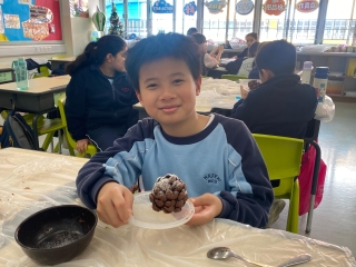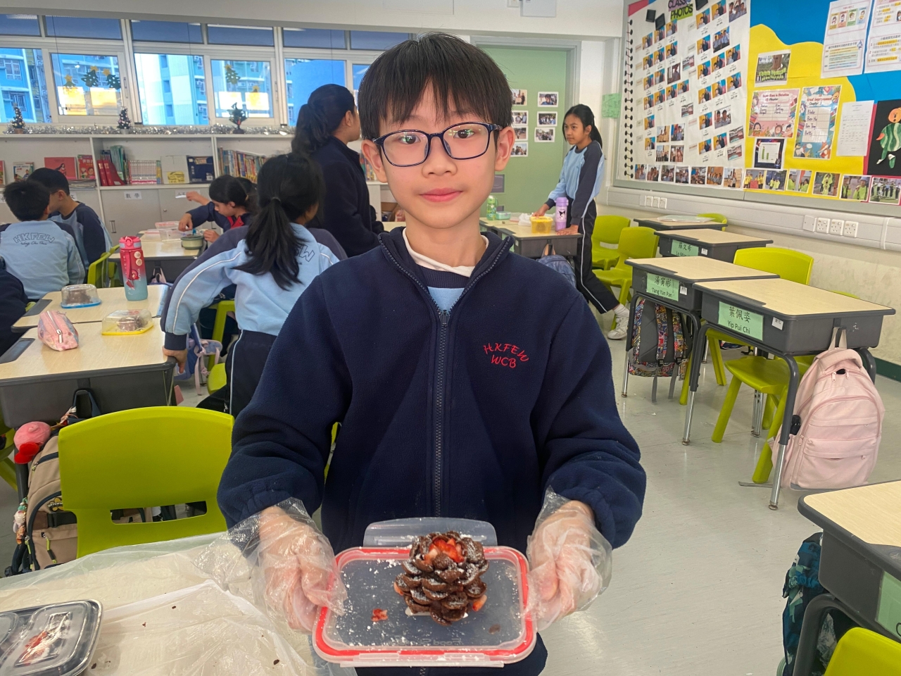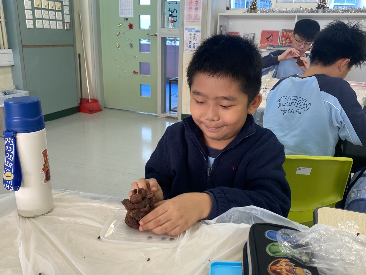 在活動結束時,每位學生都很喜愛自己製作的松果蛋糕,這是對他們認真製作的最佳獎勵。最後,學生們在這次活動中能一起成功創造出美味的食物,都感到十分開心。