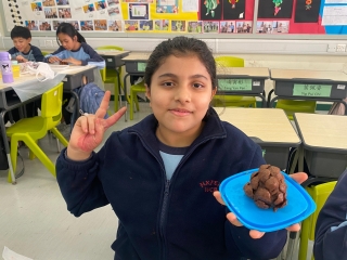 At the end of the activity, everyone loved a delicious pine cone cake they made. It was a tasty reward for their efforts. All students had great fun and created something yummy together!