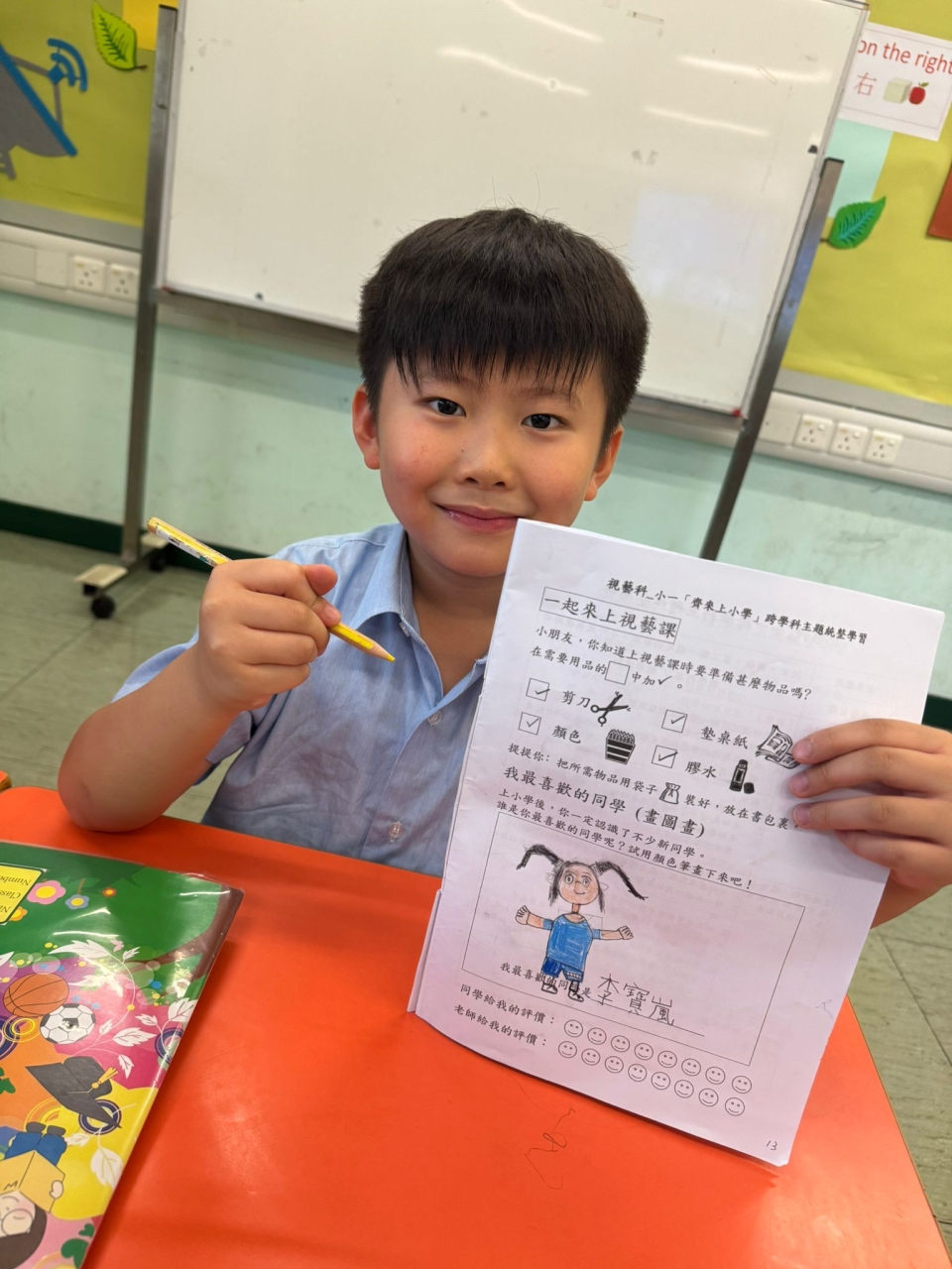 歡迎小一學生!為了讓小一學生盡快適應小學生活,開開心心迎接學習新階段,本校於開學月進行了「齊來上小學」跨學科主題學習。透過結合中文、英文、數學、人文、視藝、音樂、普通話及超學科的學習及家校的配合,小一學生們都能對本校有更深的認識,並對小學生活有充分的準備。