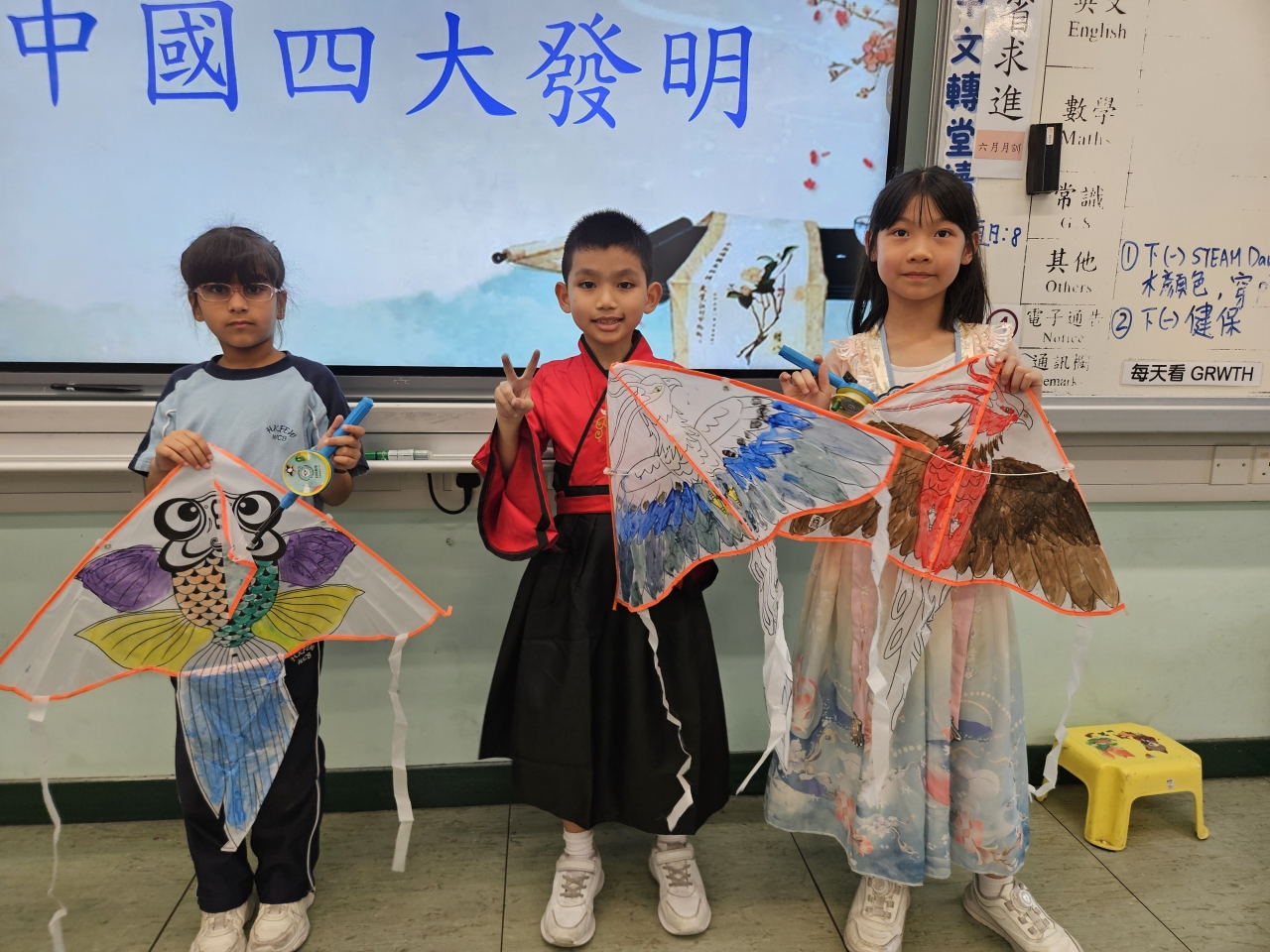 為提升學生的國民身分認同,培養學生具國家觀念及愛國的情操,本校於6月20日舉行「中華文化日」,是次學習主題為「中國古代的科技文化」。當天,學生在課堂學習中國四大發明的知識,然後藉着歷史文化互動劇場深入了解蔡倫造紙的過程,學習其鍥而不捨的精神,並透過參與古科技市集攤位,體驗造紙術、印刷術、投石器、日晷儀、自製弓箭及有趣的科學實驗。此外,學生更認識到風箏在古代科技的重要角色以及進行風箏DIY和空中放風箏體驗。