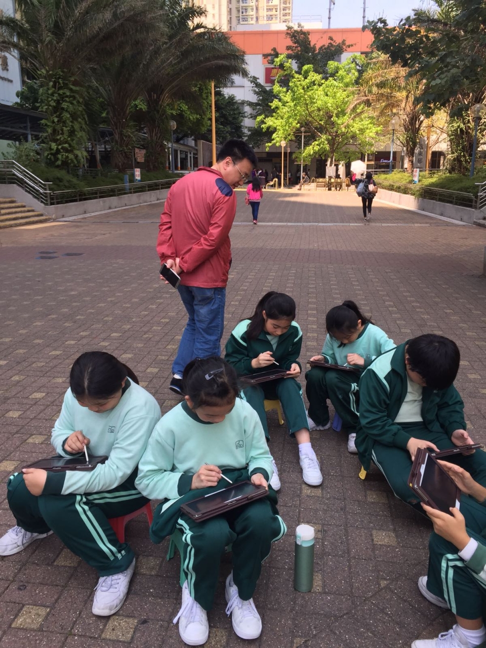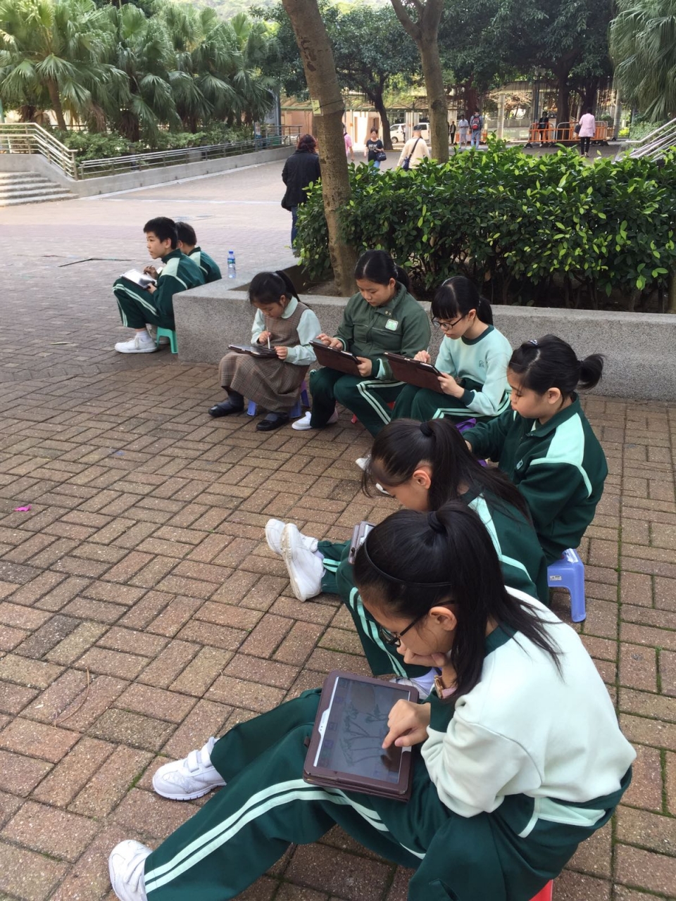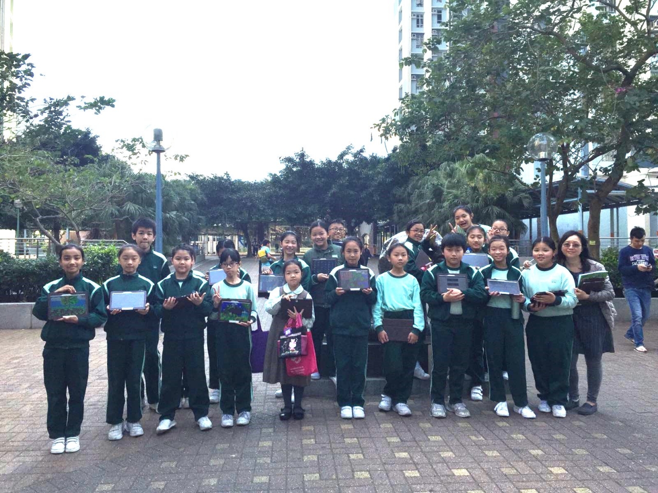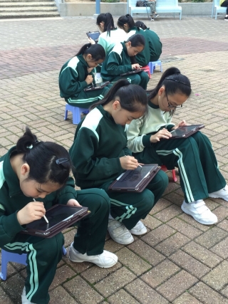 學校在三月二十四日進行了電腦科及視藝科跨學科學習活動---平板電腦寫生比賽。當天,參賽的同學拿着平板電腦來到逸東邨的金牛廣場,找一處風景美麗的地方,進行寫生。短短一個多小時,同學都畫出漂亮的作品。