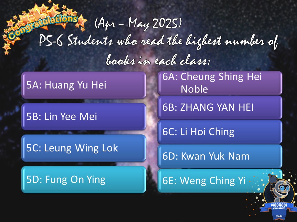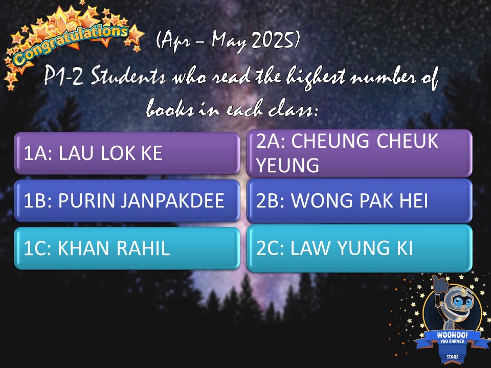 The Champions of Raz-Kids Online Reading Programme (Apr-May 2025)