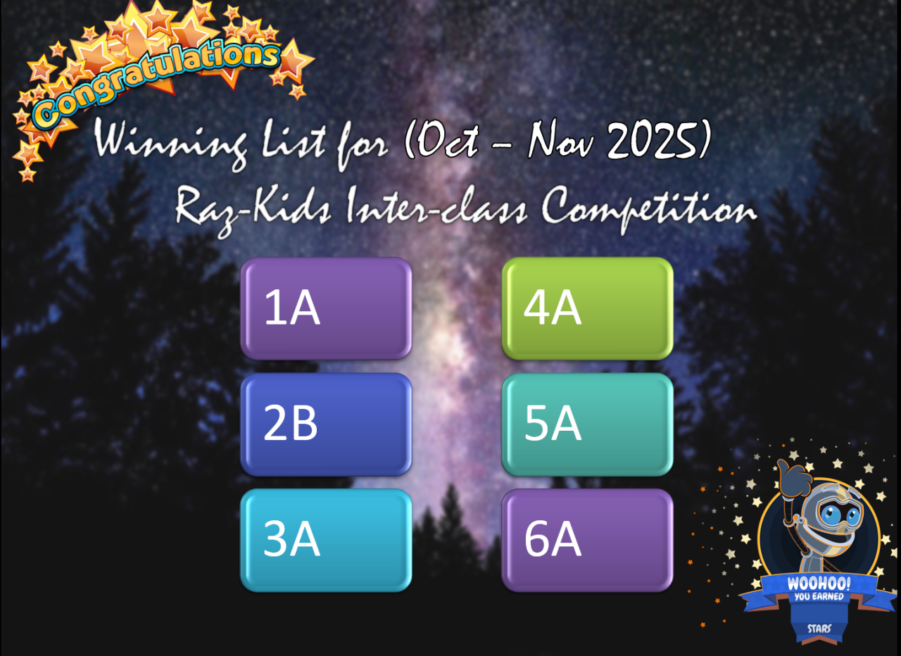 In order to encourage self-directed reading, our school has organised inter-class competition of Raz-Kids Online Reading Programme for students. The winning class in each level is the class with the most books read.