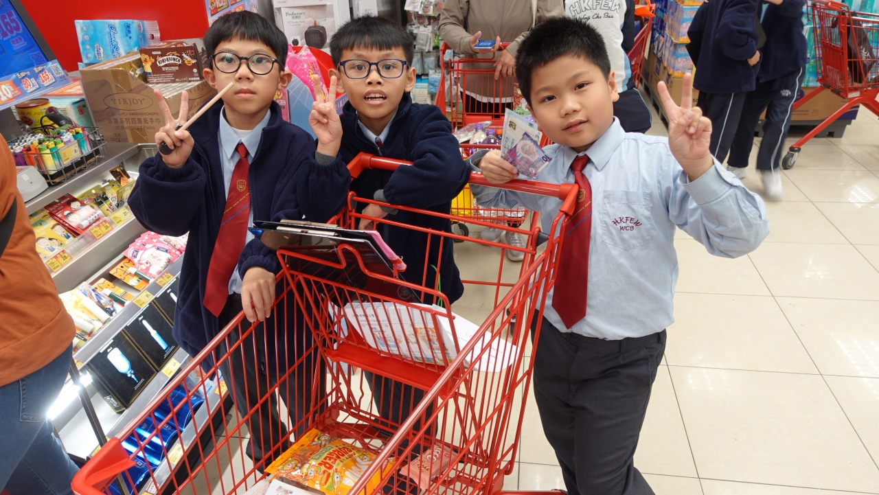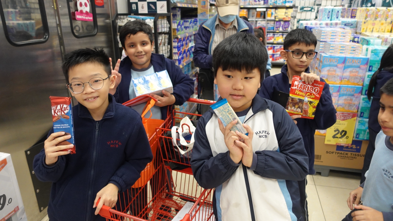 Students bought presents for the lucky draw in the coming Christmas party. They needed to plan what they wanted to buy before. On the shopping day, students walked around Yat Tung Shopping Centre and went to Wellcome Supermarket to buy presents. Students were excited to choose goods and calculate the total cost of the goods in the supermarket. Everyone had a great shopping and learning experience in this activity.