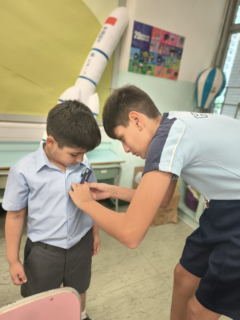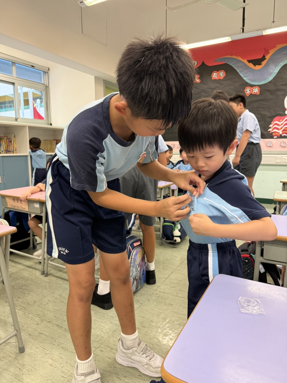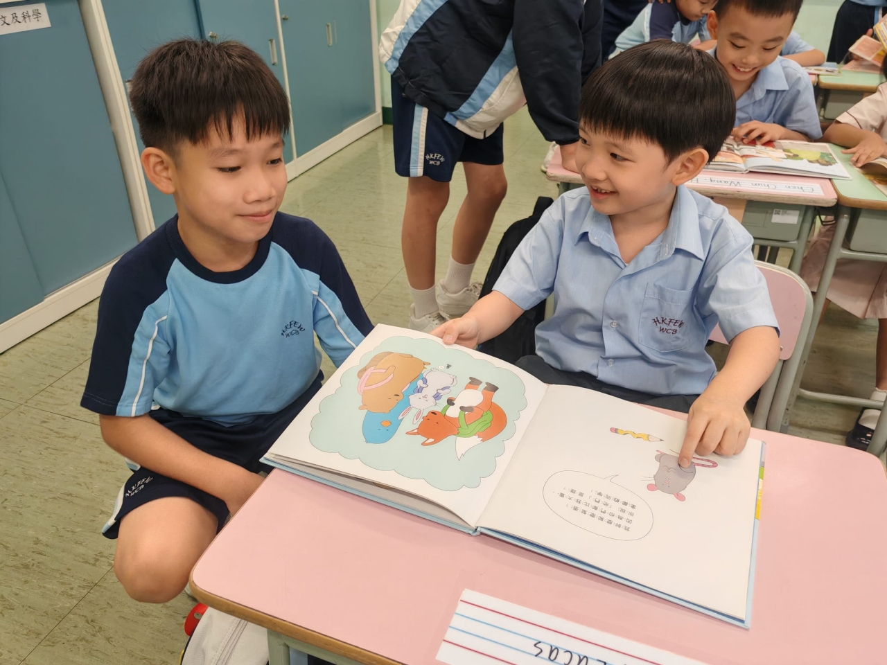 本年度學校推行「我是你的BEST」計劃,由充滿愛心的高年級大哥哥、大姐姐照顧小一的學弟學妹,協助他們檢查家課冊及適應學校日常生活。本計劃旨在培養學生正確價值觀、推廣朋輩互助精神,建構關愛文化。大哥哥、大姐姐在小息期間細心照料,盡顯愛護之心,深受學弟學妹歡迎。