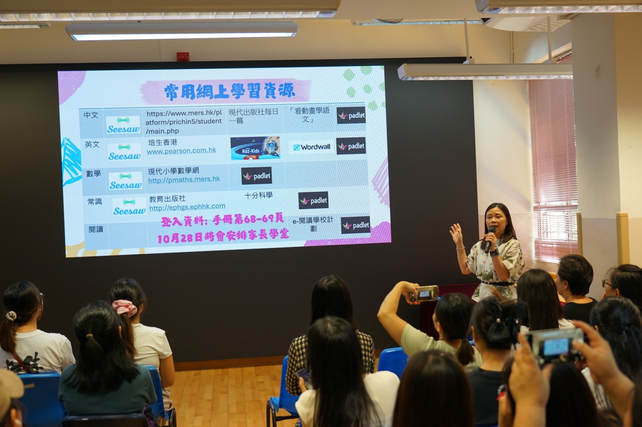 本校於9 月 30 日舉行了一、二年級「學與教」家長會,以建立家校良好溝通的橋樑。當天,黃校長在禮堂上先介紹本校的教學規劃與育人目標;之後家長便到孩子就讀班別的課室,與班主任、科任老師互相見面及暢談交流。科任老師除了講解科本的要求及評估方法外,也詳細講解學生的課堂表現與學習進度,期間家長們積極提出教育孩子的問題,老師亦認真作出適當的指導及建議,以加強家校合作,攜手為孩子成長出一分力。