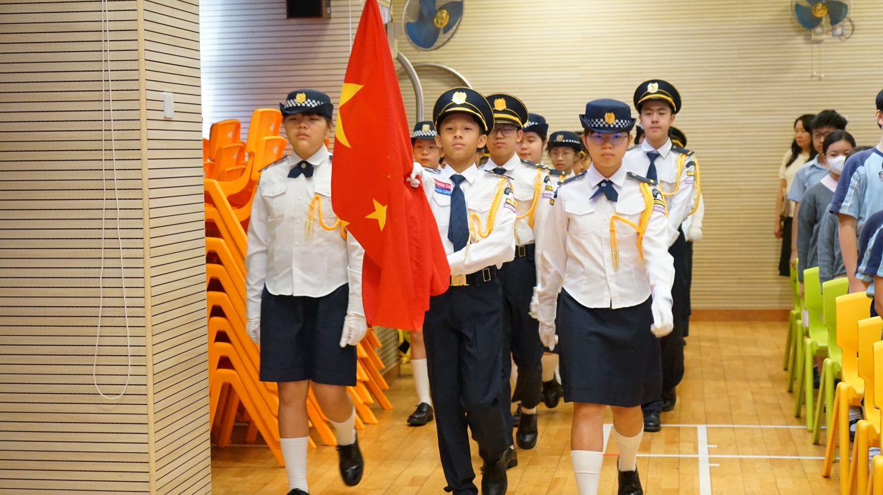 為慶祝祖國76周年華誕及提升學生的國家觀念與國民身份認同,本校於9月30日舉行了「國慶升旗禮」。活動在莊嚴的升旗儀式中拉開序幕。黃校長隨即發表了「國旗下的講話」,不僅加深了同學們對國慶由來、國家歷史及飛速發展成果的認識,更分享了其親身參與閱兵的經歷,演說振奮人心。校長勉勵各位作為未來主人翁的同學,要做好本份,努力學習,關心社會並培養良好的品德素質,以期將來能為祖國及香港的繁榮穩定作出貢獻。