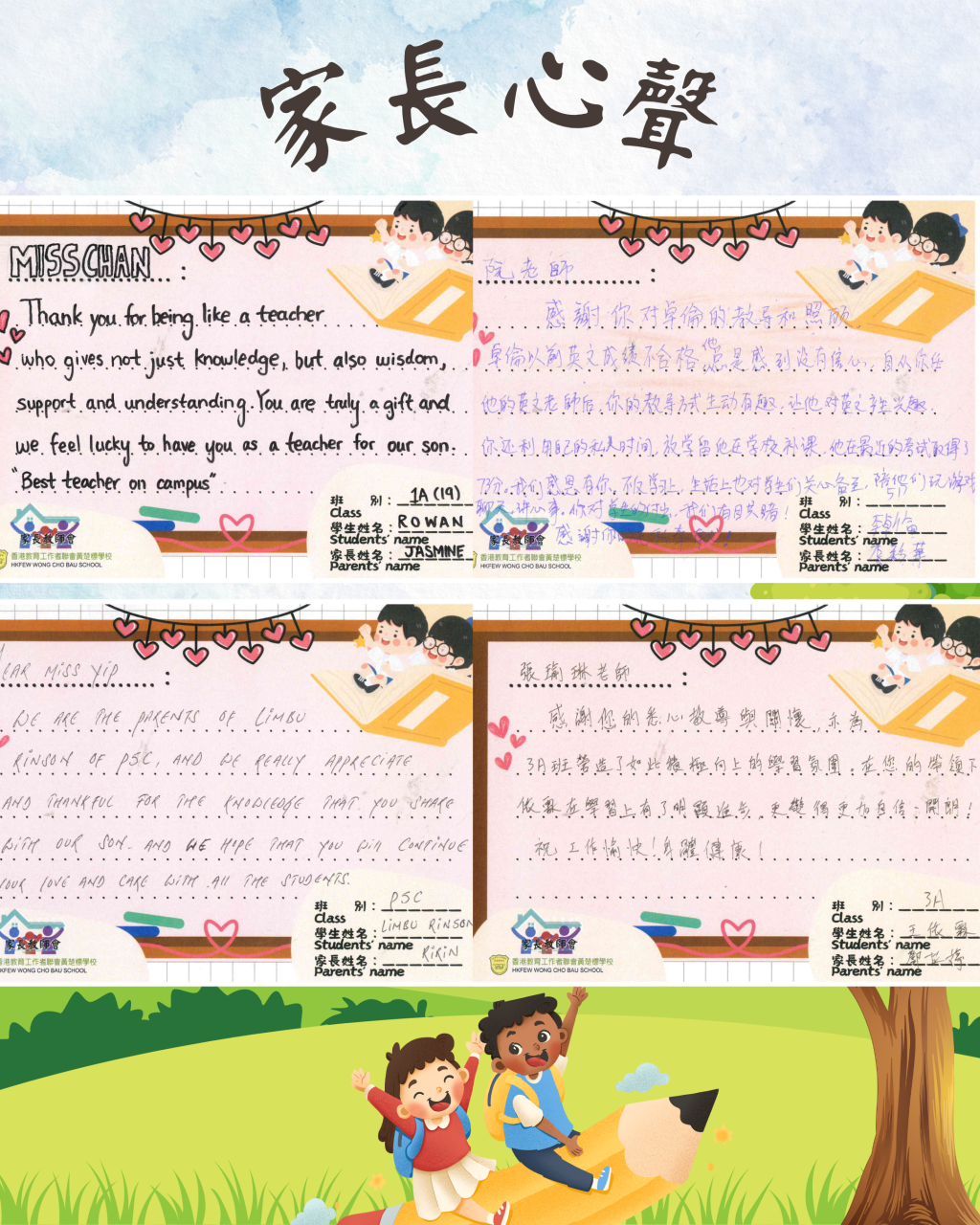 2024-2025年學期結束了,標小家長為表示對標小老師的謝意,寫下了充滿暖意及鼓舞的心意卡。