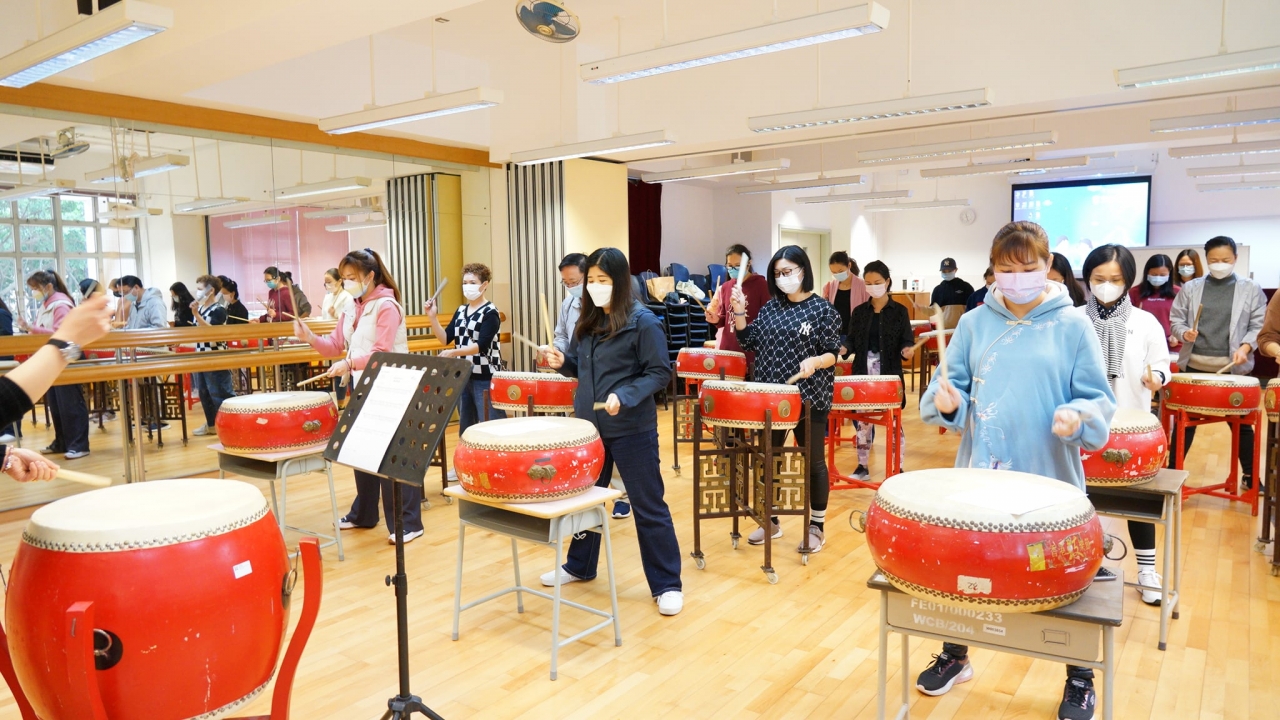 參與這次興趣班的家長人數眾多,反應非常熱烈。在廖女士的悉心指導下,家長們很快就學會了基本的節奏,打得有板有眼。隨着鼓聲飛揚,整個課室都洋溢着家長們的歡樂笑聲,場面温馨。