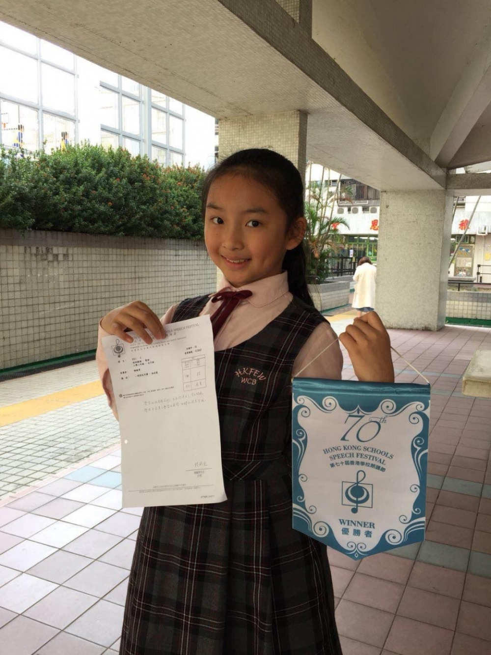 恭喜 2C班 陳曉雯同學在第七十屆香港學校朗誦節小學二年級女子組粵語 - 詩詞獨誦比賽中榮獲冠軍