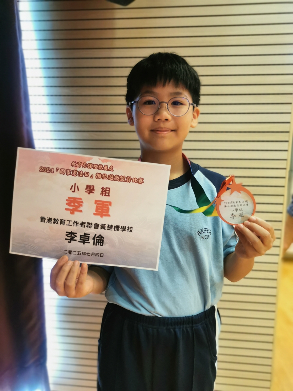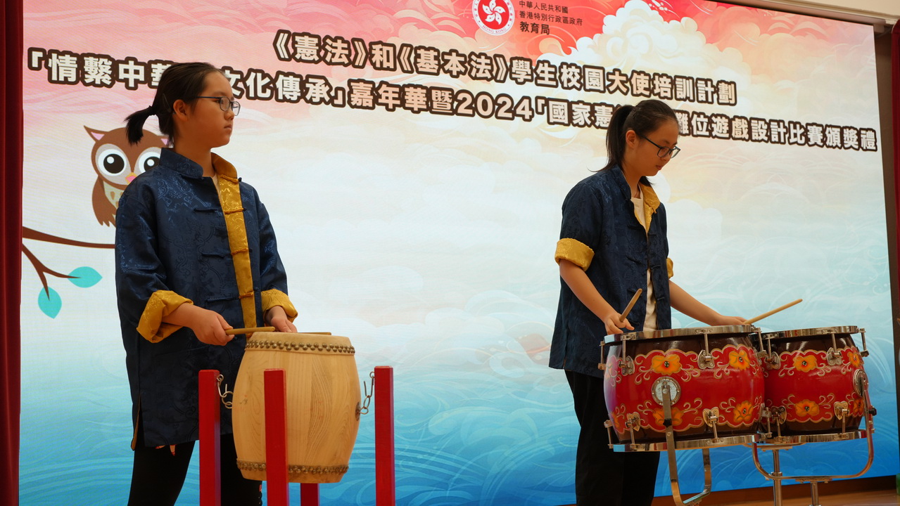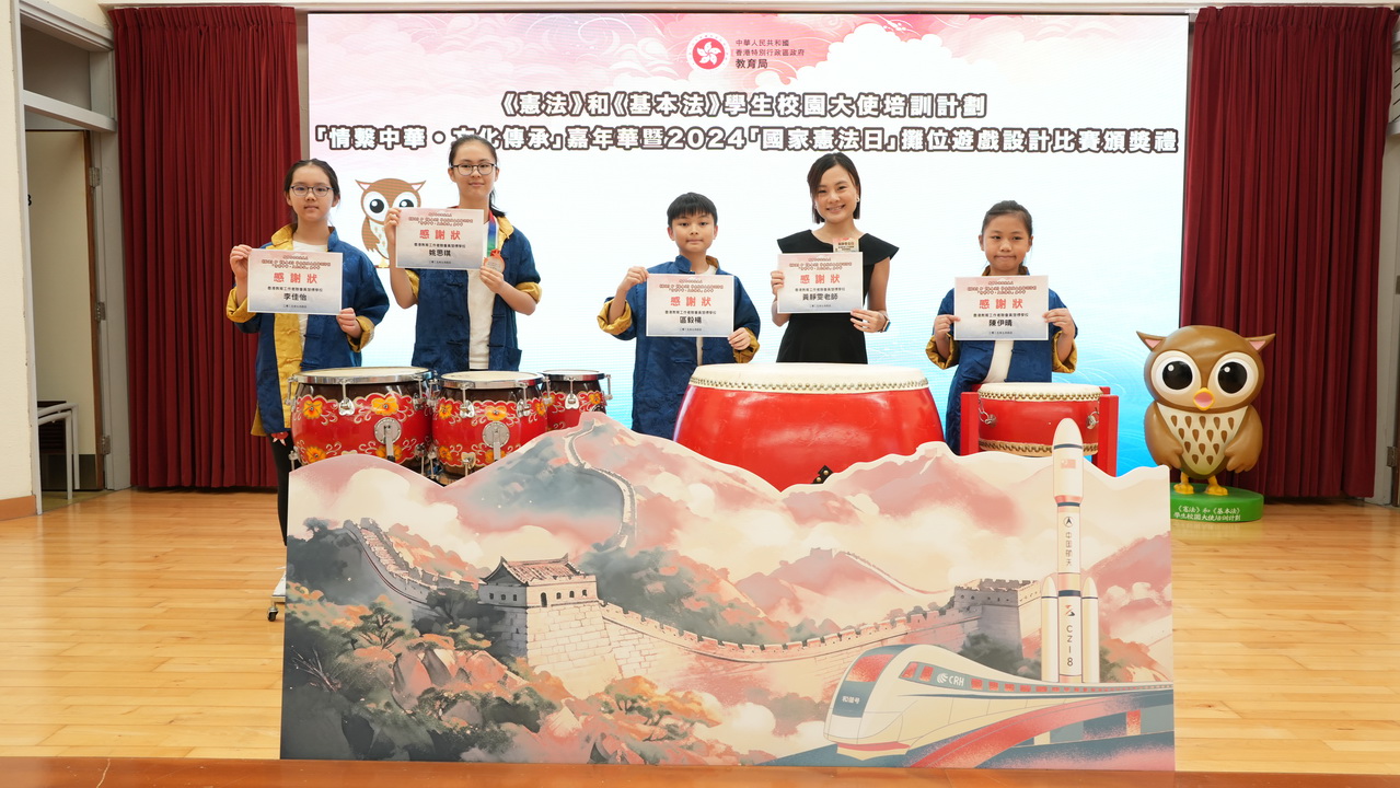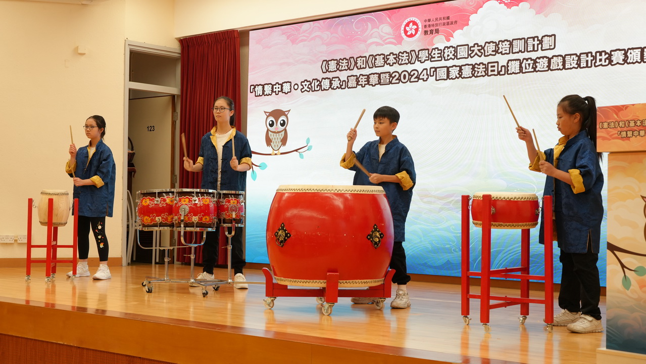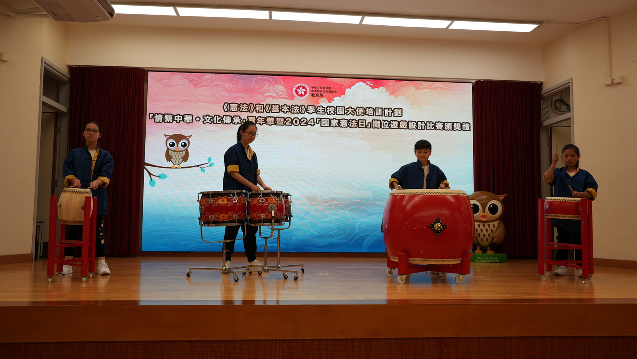 本校十分榮幸參與由教育局主辦的2024「國家憲法日」攤位遊戲設計比賽,並在比賽中榮獲季軍及最具創意獎雙項殊榮。頒獎典禮已於7月4日圓滿舉行,教育局更特別邀請本校鼓樂隊在典禮上進行精彩表演,為活動增添光彩。