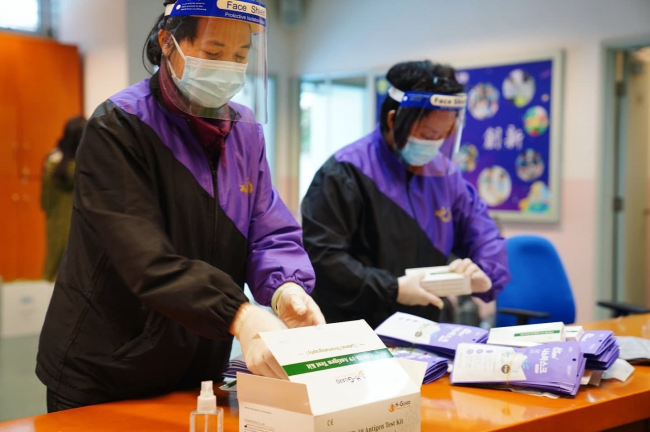 近日香港疫情嚴峻,每天染疫個案達數千宗。本校亦陸續收到家長、學生染疫的消息,情況令人擔憂。對確診家庭所面對的各種困難和挑戰,學校亦感同身受。我校社工、教師除了致電家長,表達關愛外,還把「愛心抗逆包」(KF口罩、兒童口罩、快速測試包等)送到各確診家庭,以示支持及協助其渡過「疫」境。