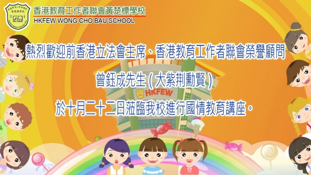 熱烈歡迎前香港立法會主席、香港教育工作者聯會榮譽顧問曾鈺成先生(大紫荆勳賢)於十月二十二日蒞臨我校進行國情教育講座。